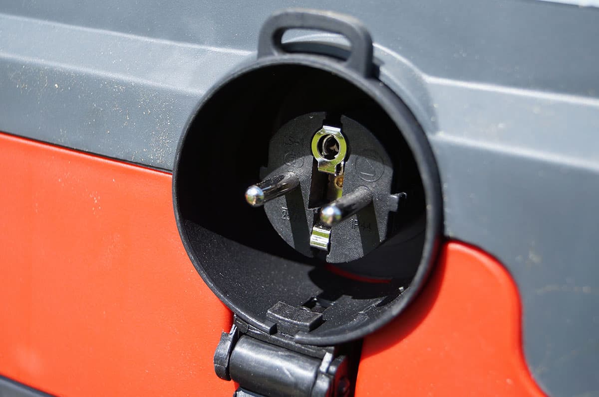 Питание измельчитель получает через встроенную розетку, которая накрыта сильно подпружиненной крышкой.