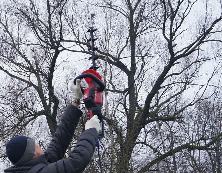 Кусторез почти не требует ухода. Благодаря тому, что металлические части работают впритирку друг к другу, между зубьев не остается никакого мусора. Слегка обмахнуть щеткой — вот и весь уход.