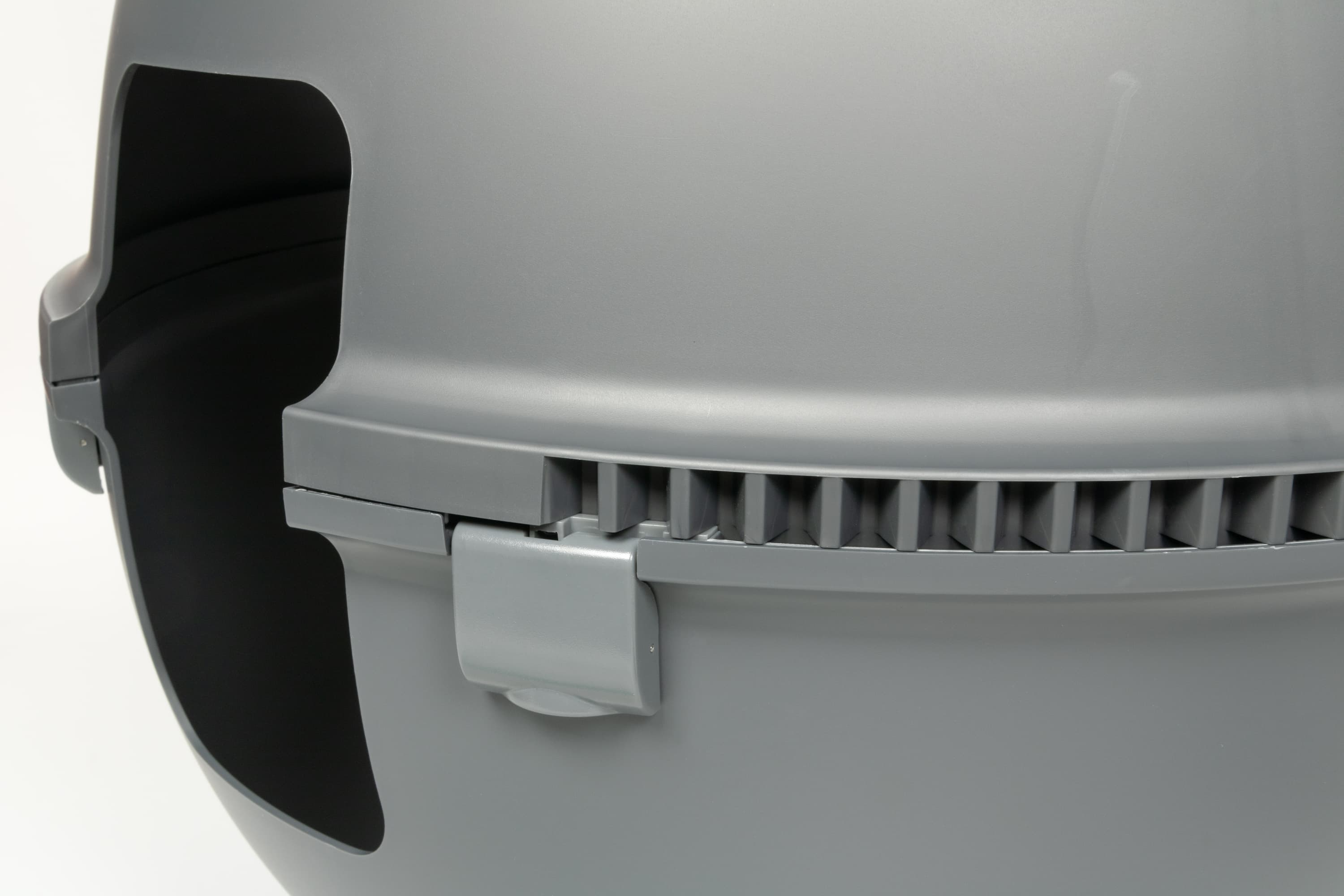 К тому же, это устройство со множеством уровней защиты абсолютно безопасно для животных, а его внешний вид, в отличие от традиционных кошачьих лотков, которые приходится стыдливо прятать в туалетах и ванных комнатах, радует глаз и позволяет установить туалет в любом месте квартиры.
