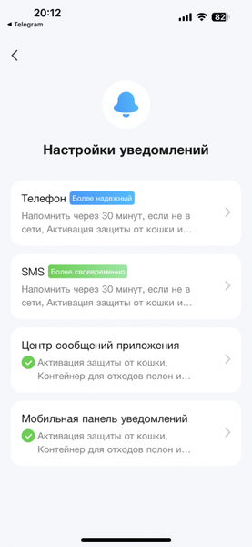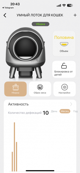 В целом, можно похвалить удобство использования мобильного приложения, сделанного в приятном минималистичном стиле и помогающего следить за количеством и продолжительностью посещений автолотка и весом животного. Приложение пришлет пуш-уведомление о заканчивающемся в чаше наполнителе, а история посещений поможет отслеживать регулярность испражнений животных и соответственно контролировать их здоровье.