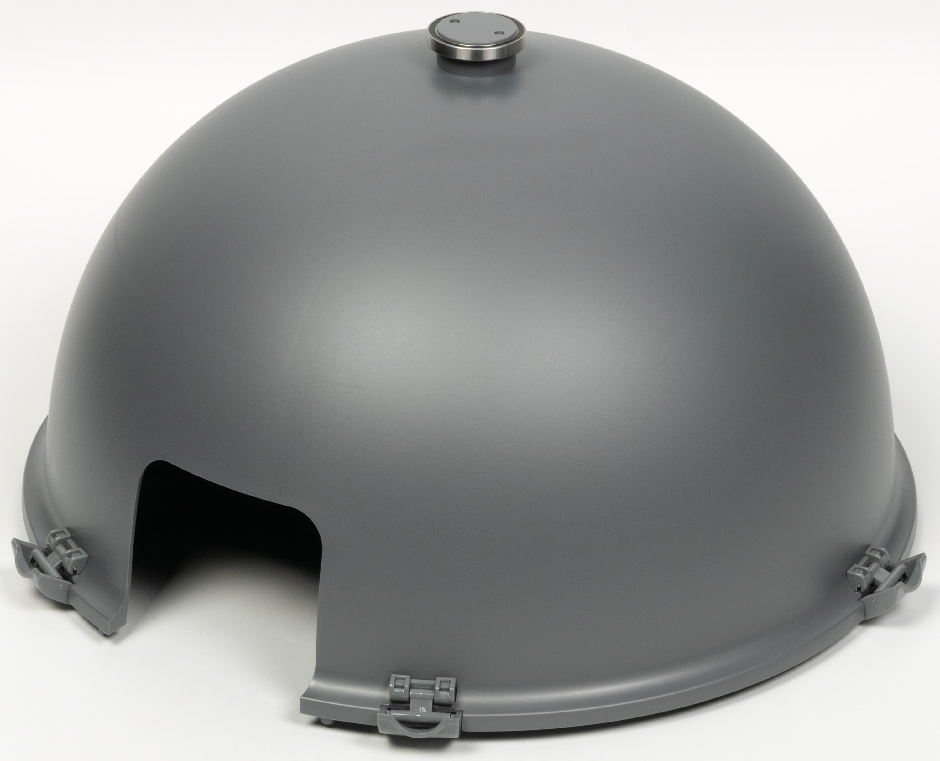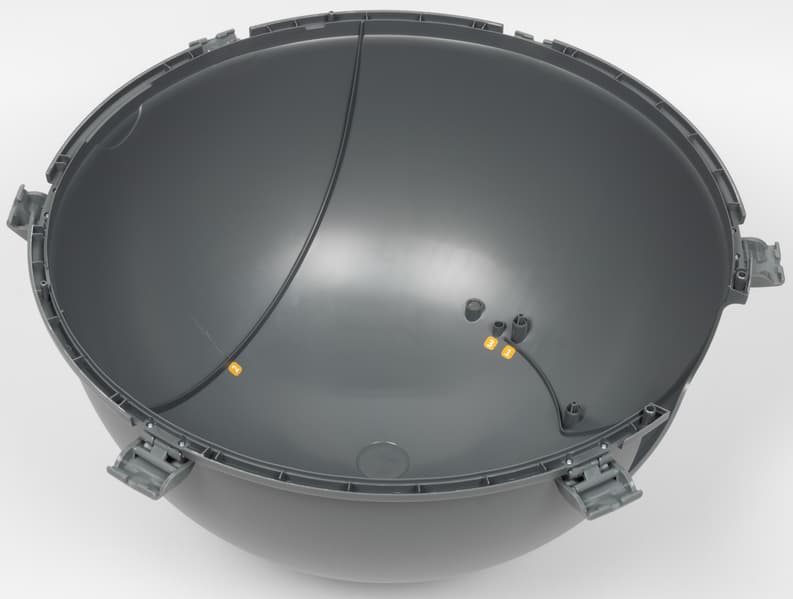 Снаружи на корпусе нет никаких выступающих элементов, кроме тех самых стилизованных «ушек», которые не несут никакой функциональной нагрузки — лишь эстетическую. Сборная крышка из двух половинок просто накладывается сверху и примагничивается магнитными защелками. Она легко снимается и дает доступ к отверстию в верхней части сферы для засыпания наполнителя.