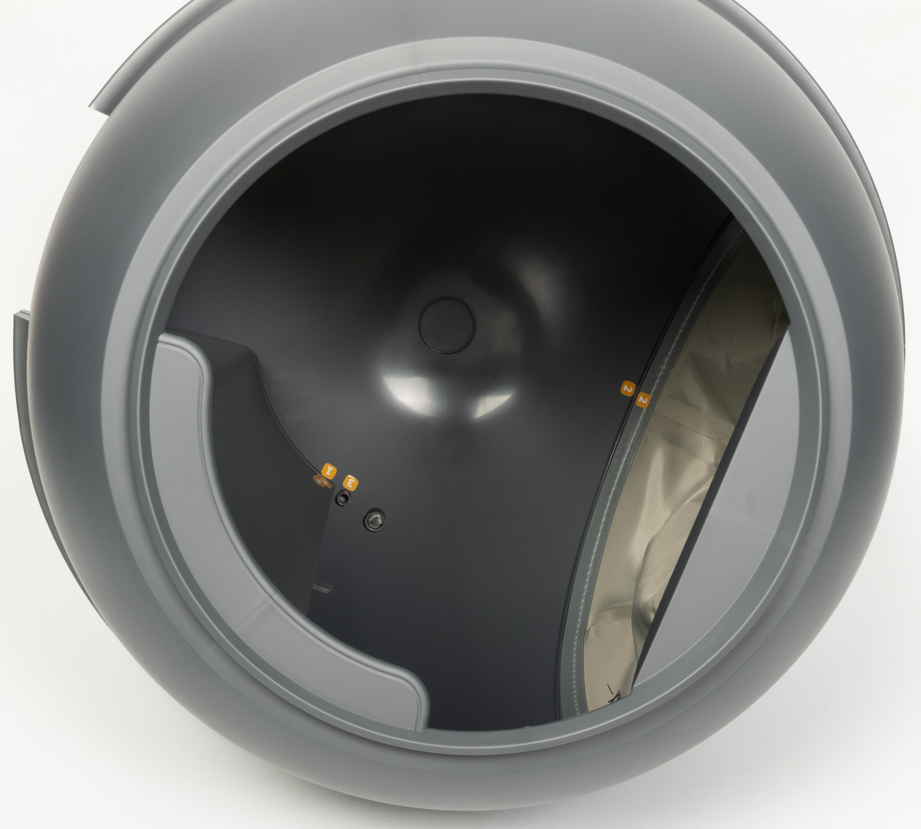Во всех четырех углах корпуса расположены датчики веса, а внутри находятся 2 датчика Холла и 2 инфракрасных датчика. С их помощью прибор узнает, что внутрь заглядывает животное, и мгновенно приостановит очистку (если она в данный момент запущена), а также взвесит питомцев, забравшихся внутрь, и оценит массу самого наполнителя.