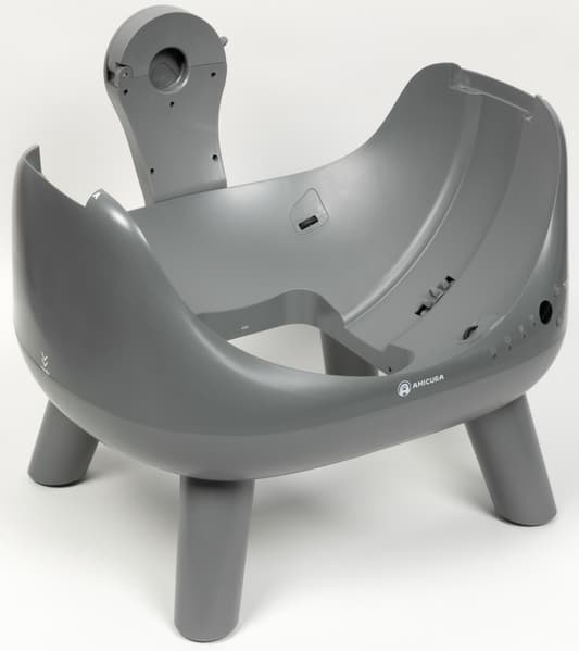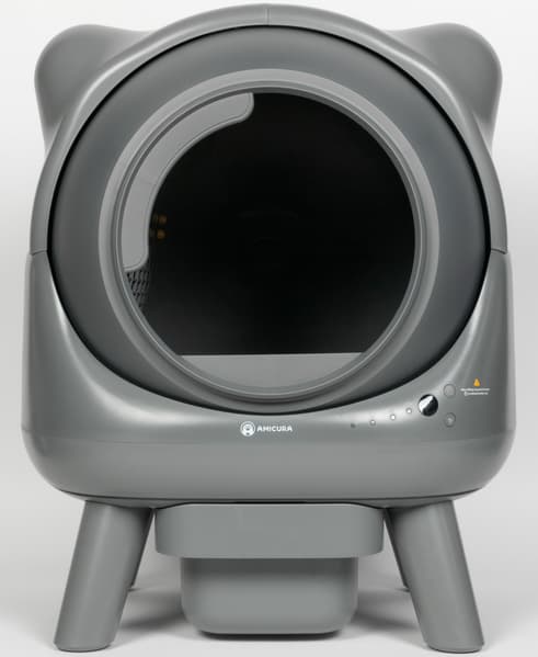 Неоспоримыми преимуществами AmiCura Cura X1 являются внушительные внутренние габариты и всегда открытый вход без дверцы. Конструкция прибора (возможность быстрого снятия крыши) избавляет от необходимости использовать совок при добавлении наполнителя. Можно просто насыпать его прямо из мешка через верхнее отверстие в чашу, а потом обратно прикрыть его крышкой с «ушками». Причем с минимальным количеством поднятой пыли.