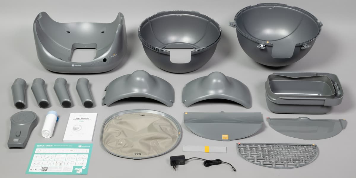 - сам кошачий лоток с базой и корпусом в разобранном виде