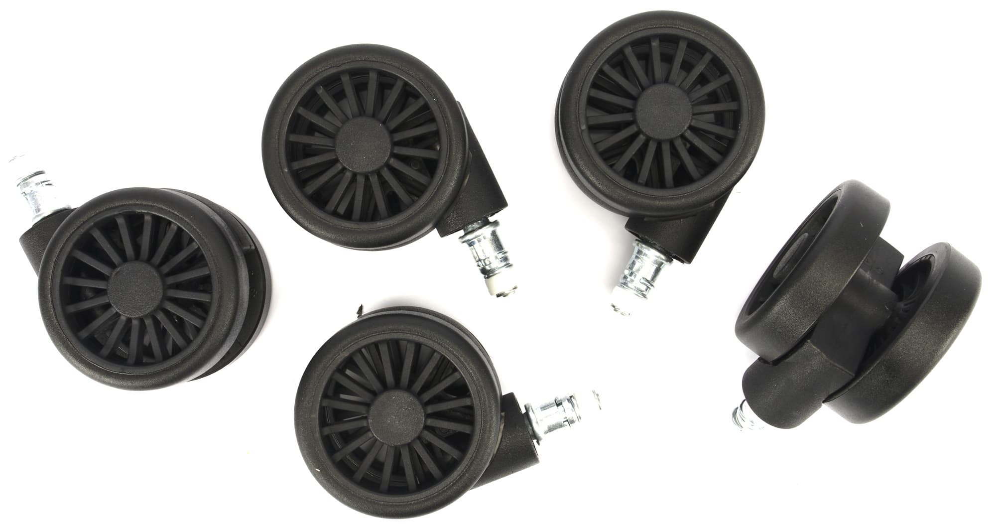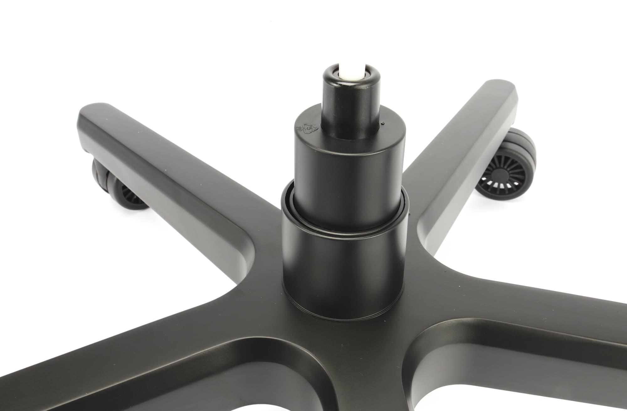 Установка роликов предсказуемо не вызывала никаких сложностей. Их достаточно установить на свои места с небольшим усилием. Далее — переворачиваем крестовину, устанавливаем в центральное отверстие патрон газлифта, а сверху надеваем на него телескопический защитный кожух из пластика.