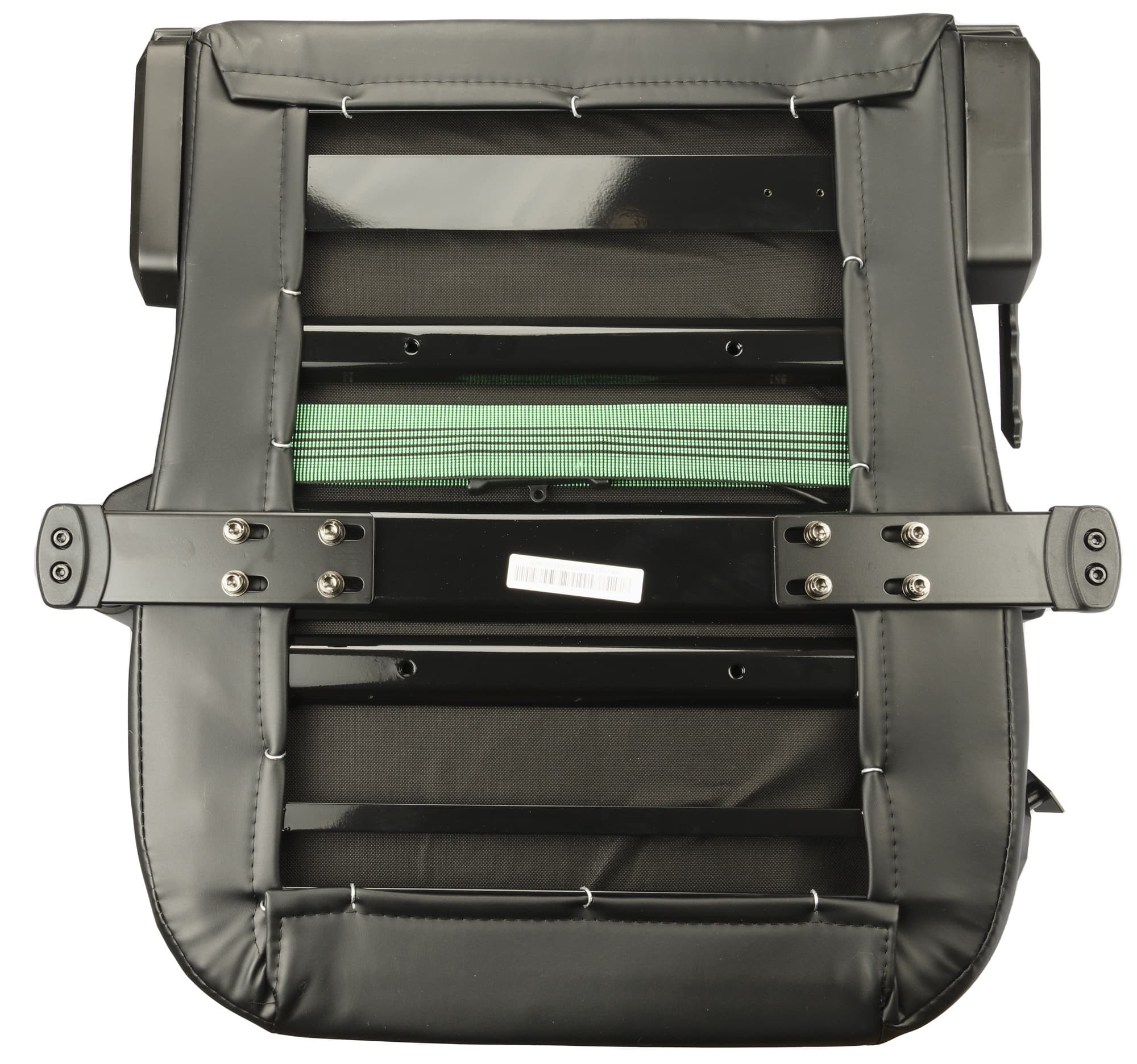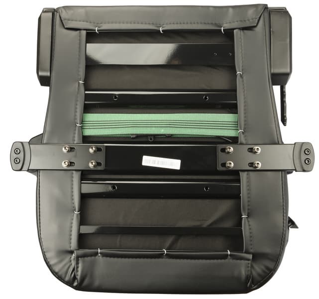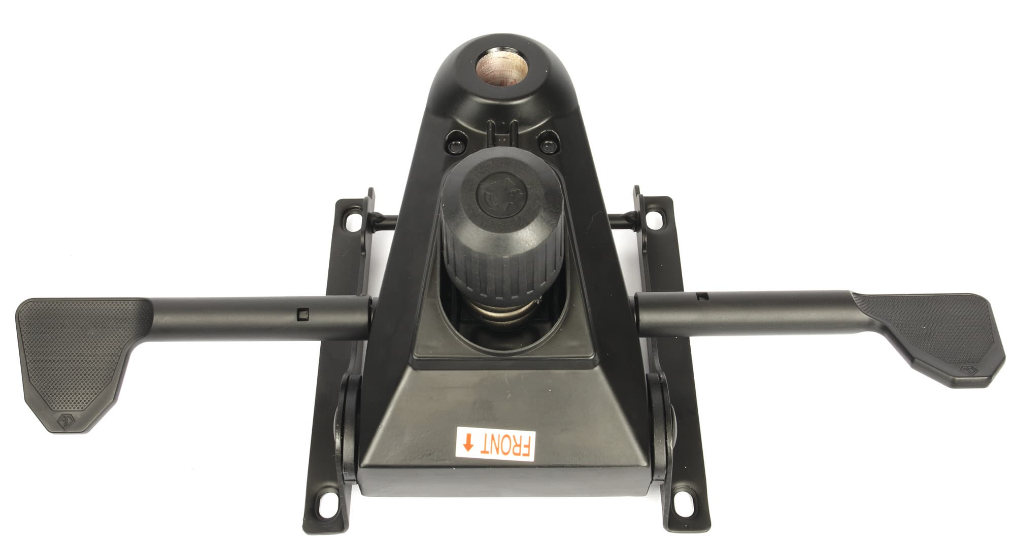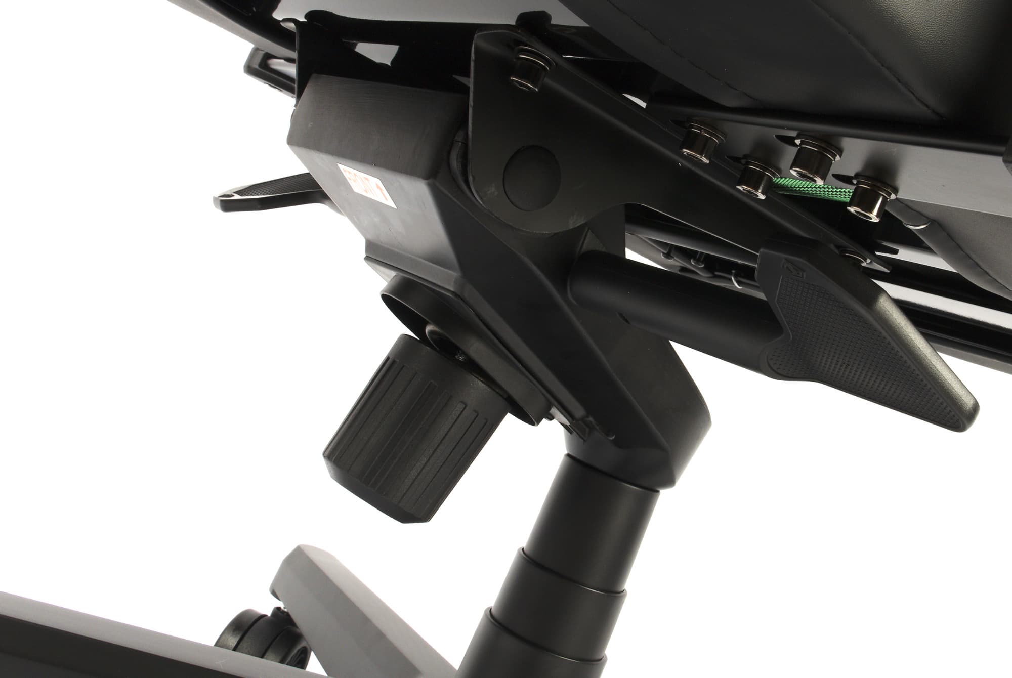 На время откладываем механизм качения в сторону, а сами тем временем осторожно переворачиваем кресло и крепим многофункциональный механизм наклона к нижней части сиденья с помощью четырех винтов M8 (снова не забывая про правильное расположение наклейки Front).