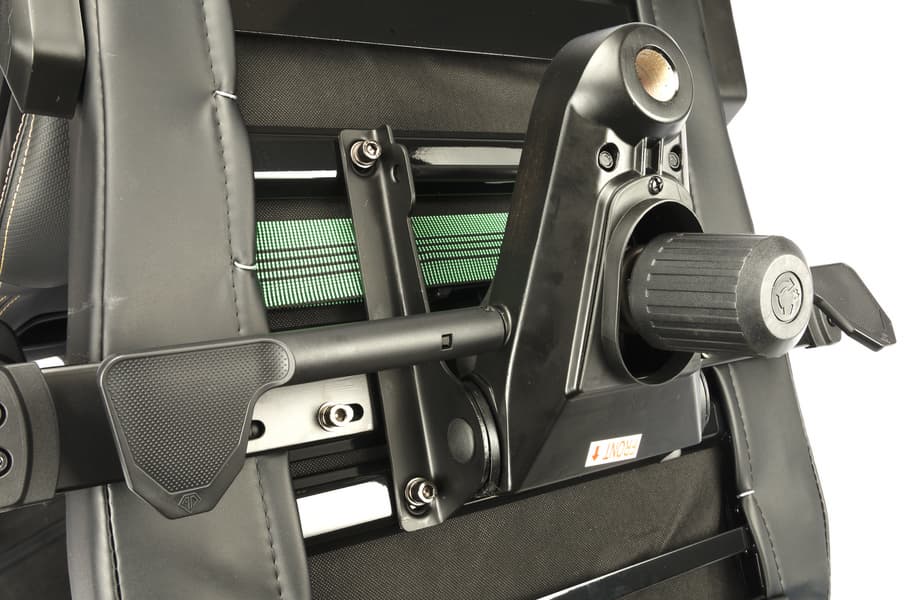 Сам угол наклона и высота сиденья регулируются с помощью двух рычагов. Чтобы изменить высоту сиденья, мы должны повернуть правый рычаг вверх. Для фиксации — опускаем его вниз.