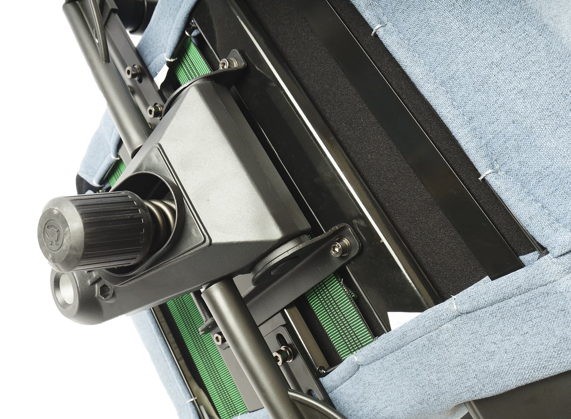 Кнопкой на передней части регулируется положение относительно сиденья. У этой модели три позиции: параллельно креслу или под углом около 30° — положительным или отрицательным.