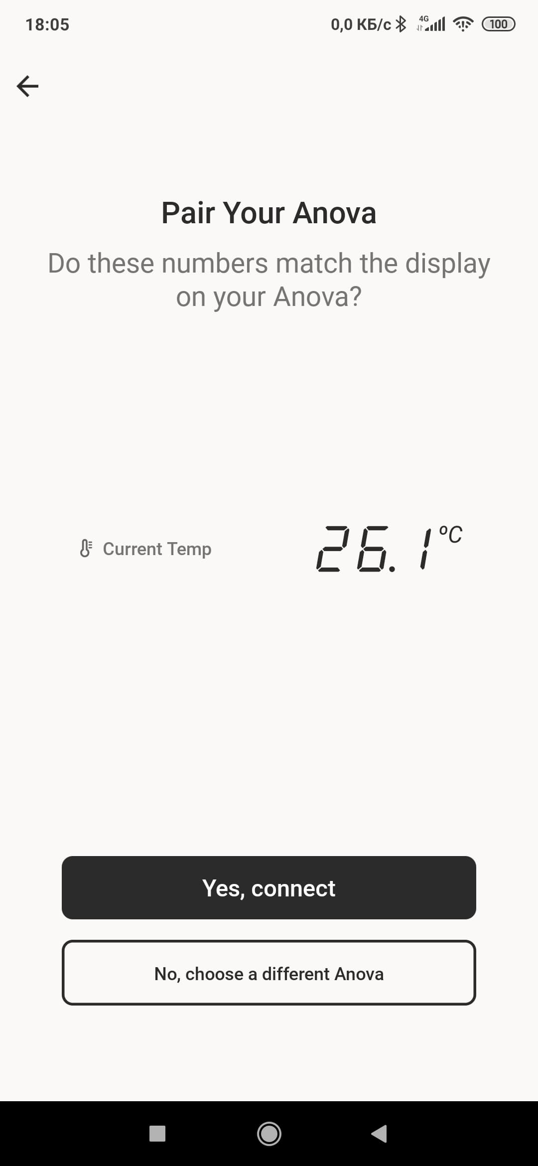 При первом запуске приложение предложит подключиться к су-виду. Проверочной информацией будет температура, отображаемая на экране: «Мы нашли прибор, который показывает столько-то градусов. Подключиться к нему или поискать другой?», — блестящее по своей простоте и очевидности решение, не требующее от пользователя никаких паролей, моделей и прочей ерунды.