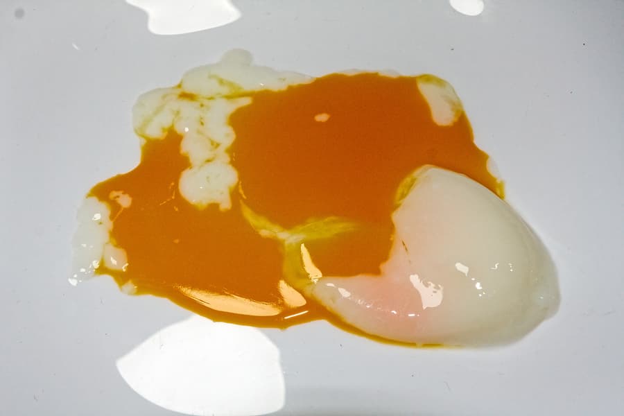 Начнем наше тестирование с приготовления обычных куриных яиц: температуры в 62,8 °C и 45 минут времени вполне достаточно, чтобы получить мягкий, кремообразный белок и жидкий желток.