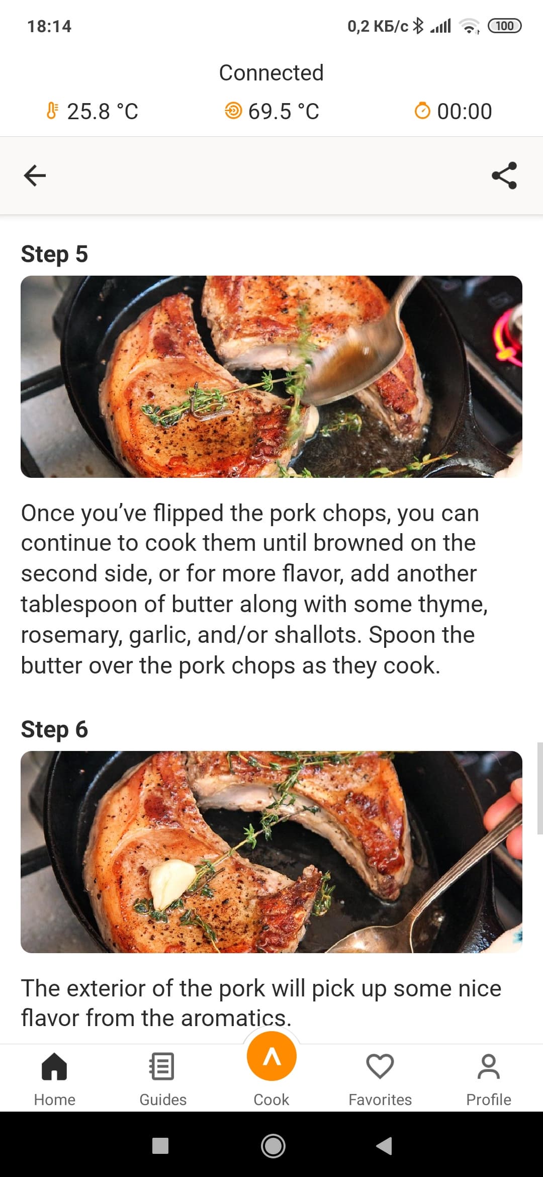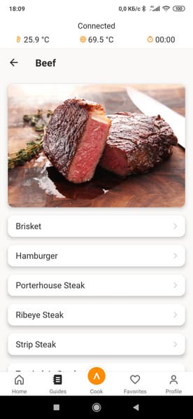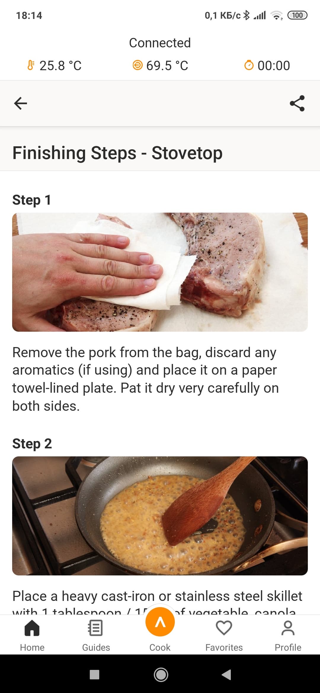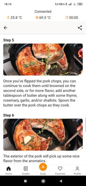 Напомнят нам и о том, когда нужно приправлять мясо солью и специями (сразу — если вы готовите сейчас либо в конце приготовления — если вакуумируете мясо для приготовления позже). Ну и, конечно же, для каждого рецепта присутствует кнопка «готовить это сейчас».
