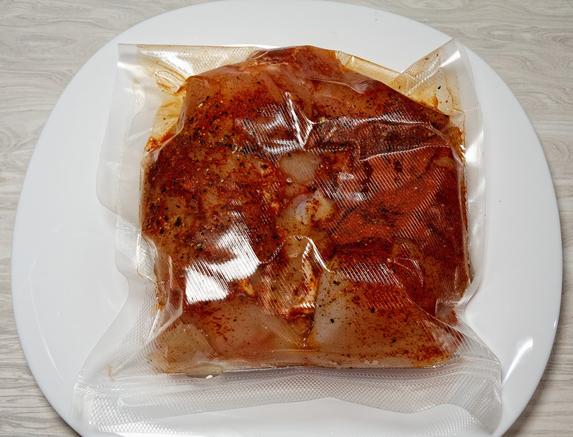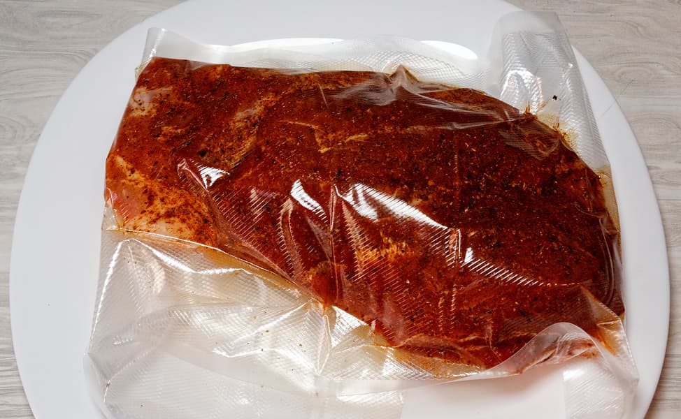 Часть смеси рекомендуется оставить для того, чтобы повторно натереть мясо после извлечения из вакуумного пакета.