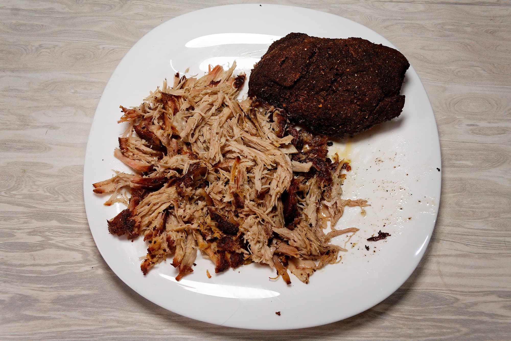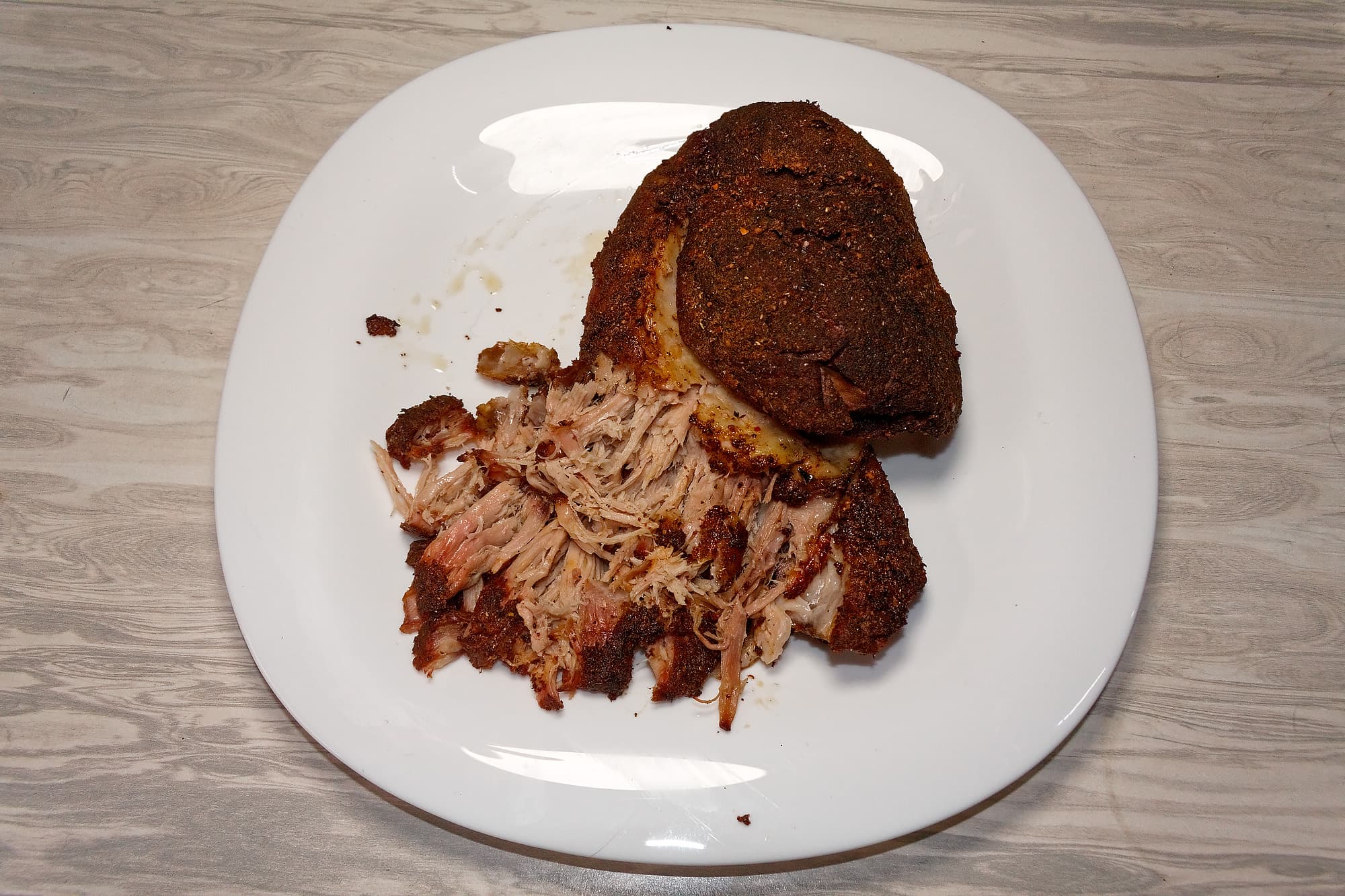 Для приготовления свиной лопатки подходит температура 63 °C (если мы собираемся нарезать ее кусочками) либо 74 °C (если нам нужна «рваная свинина»). Мы решили пойти вторым путем.