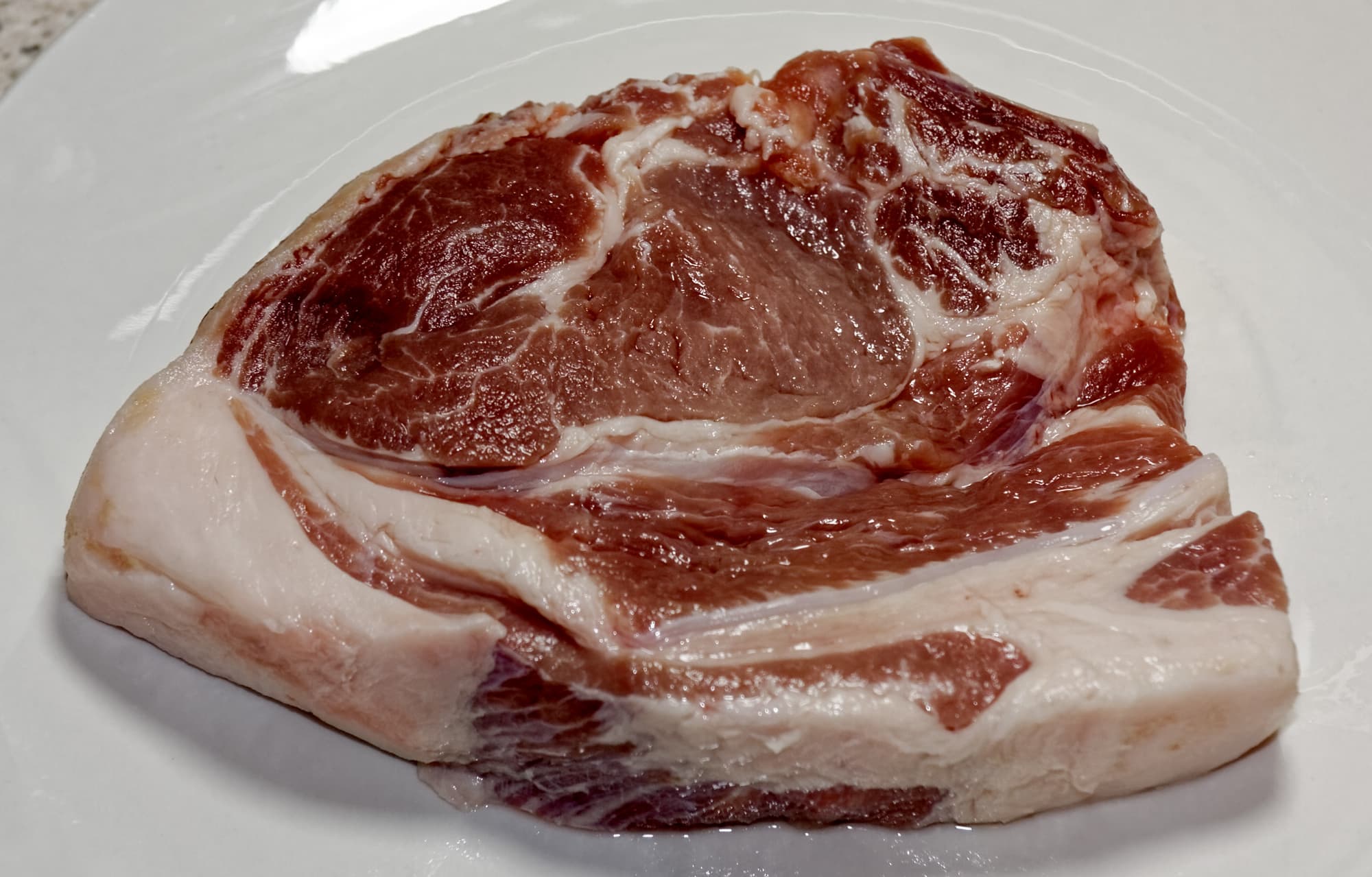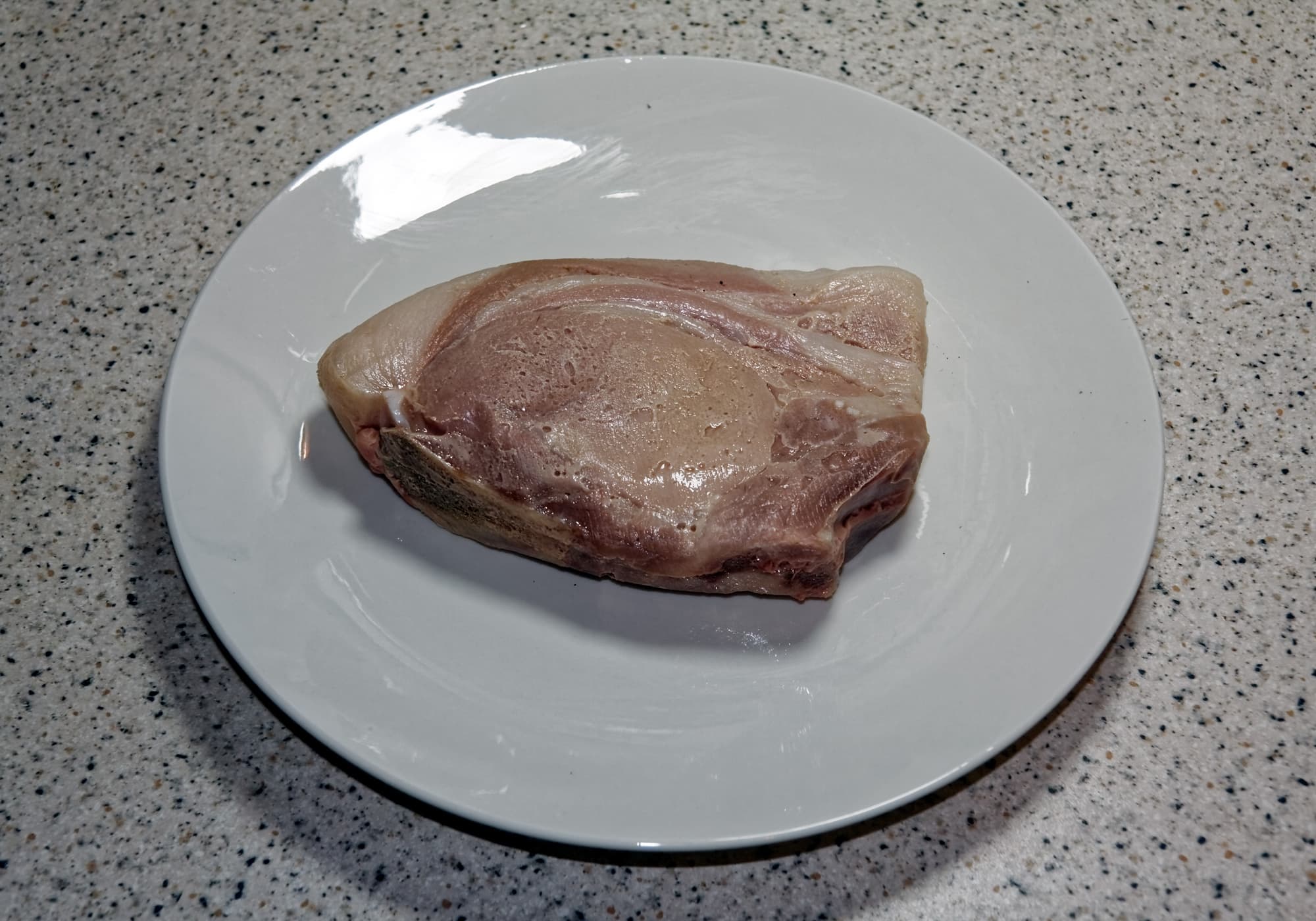 Для этого рецепта мы взяли пару кусков свинины на ребре, которые готовились в вакуумном пакете 1,5 часа при температуре 57 градусов.