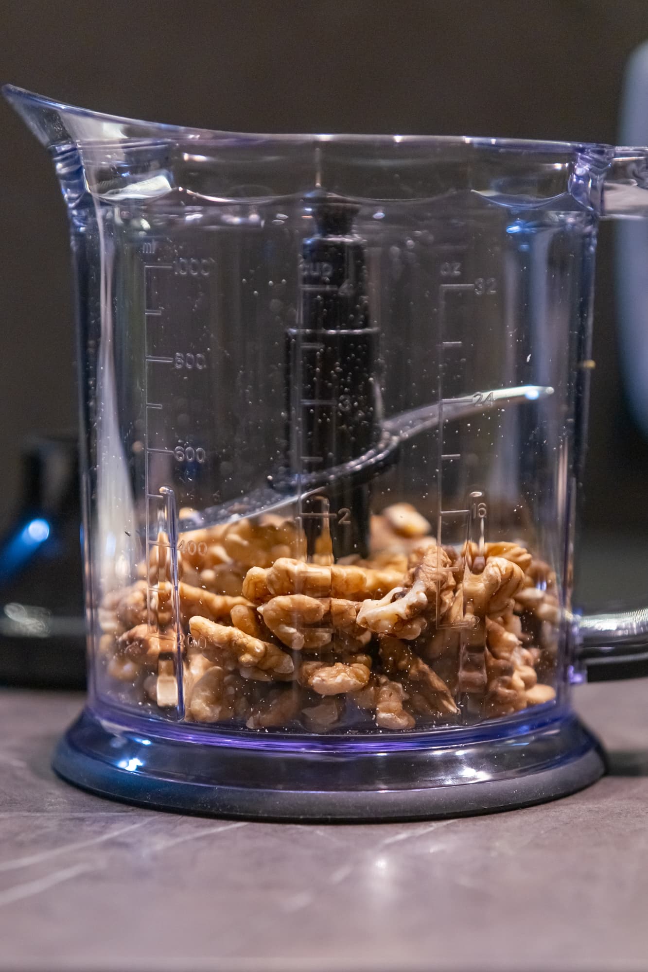 В инструкции предупреждают о том, что блендер не следует использовать для измельчения льда, мускатного ореха, кофейных зерен и прочих твердых продуктов, но грецкий орех как раз входит в список разрешенных. Итак, на измельчение орехов у нас ушло 8 секунд. Турбо-режим не понадобился.