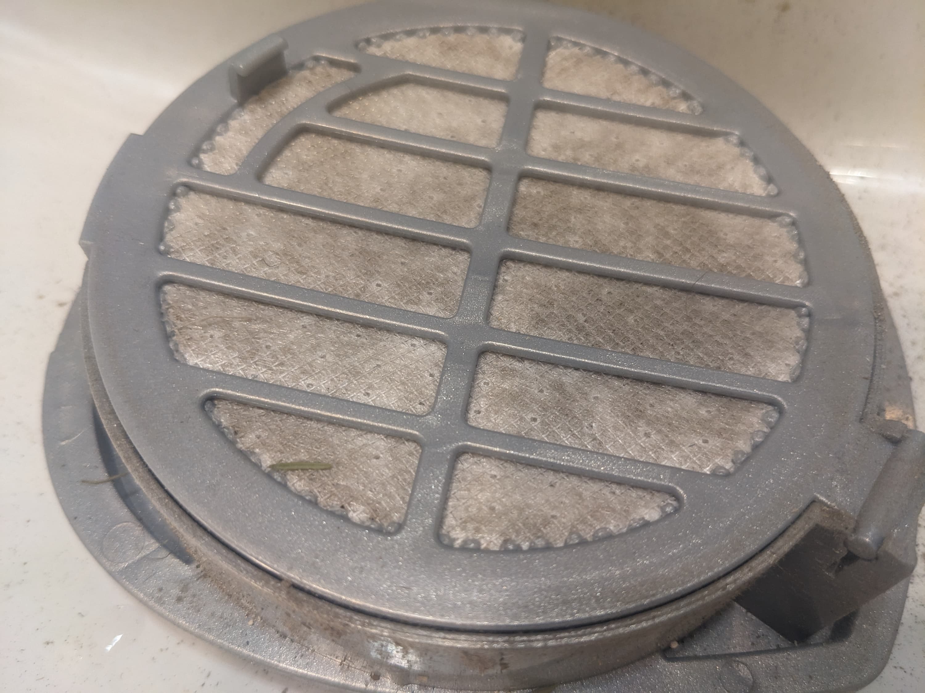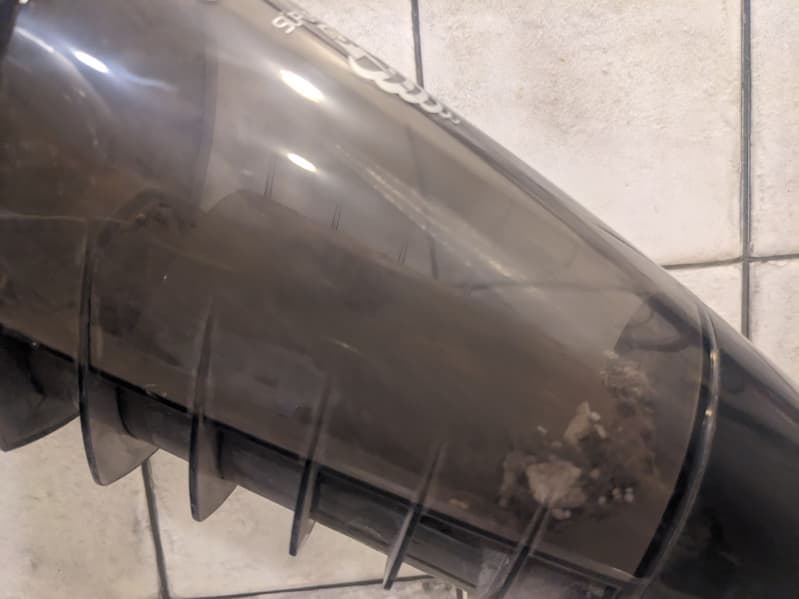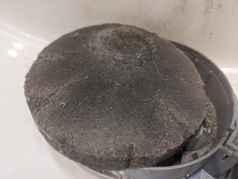 Крупные отверстия центрального элемента циклона служат слабой защитой от пыли, и до предварительного поролонового фильтра долетает довольно много мусора.