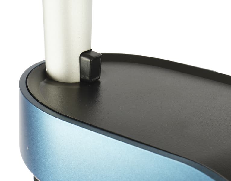 Насадка опирается на два больших колеса в пяточной части и два ролика поменьше на переднем конце. Для облегчения скольжения тут применяется также небольшая велюровая полоска, а для лучшего прилегания к поверхности предназначен резиновый ламель позади центрального отверстия.