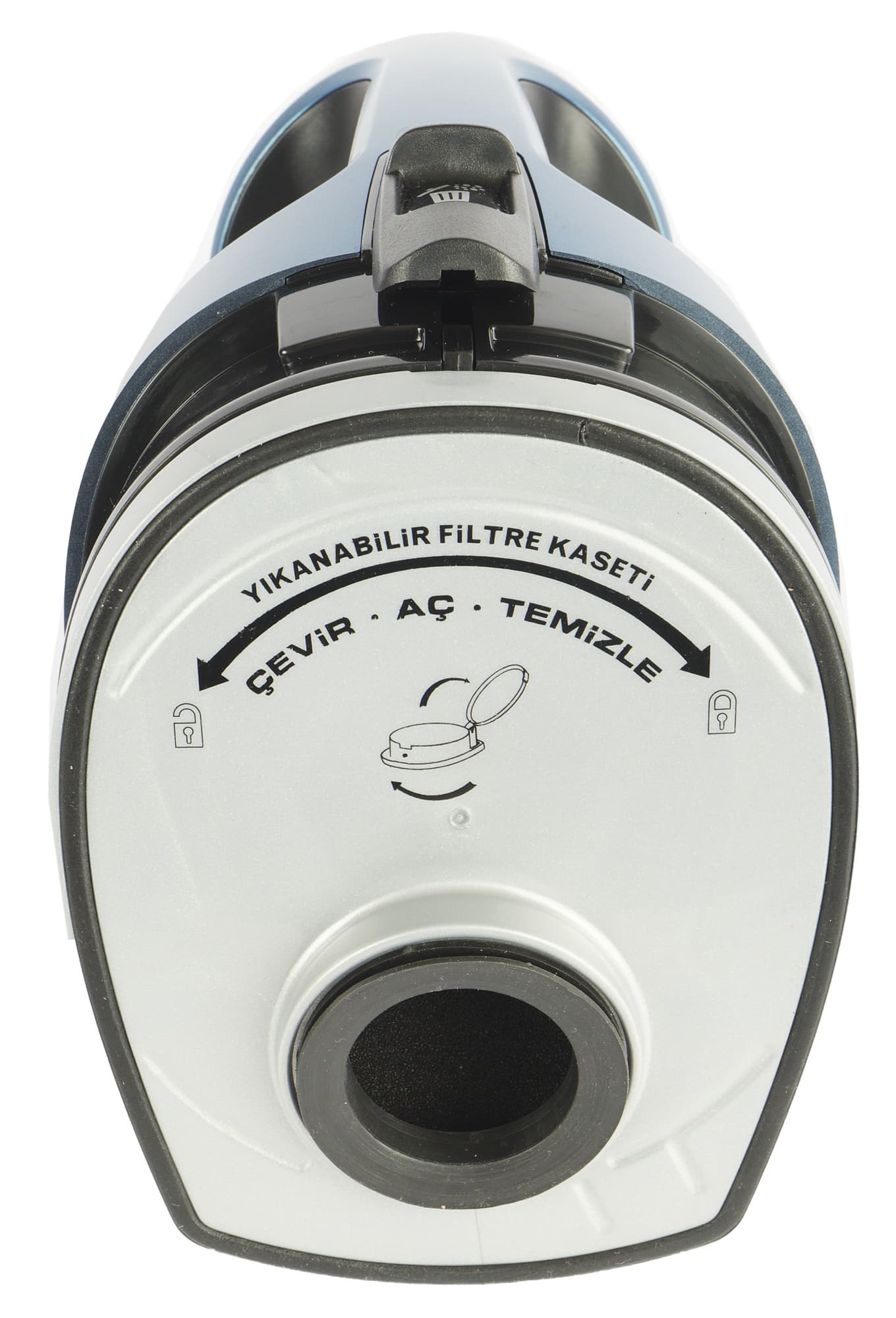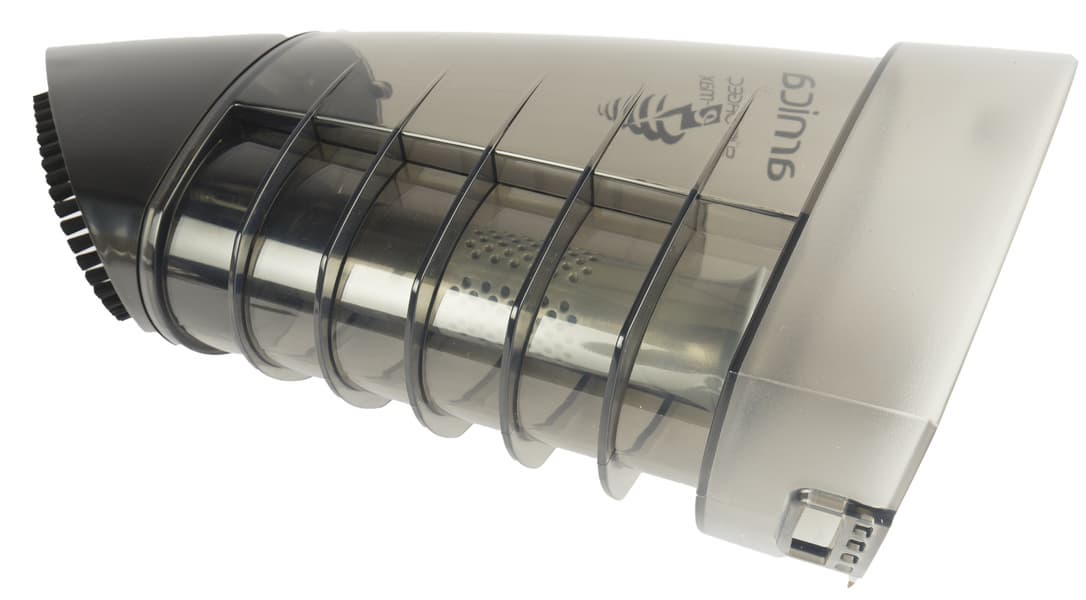 Всю переднюю половину продолговатого корпуса занимает мусоросборник весьма внушительного (1,3 литра) объема. Он надежно удерживается с помощью защелки на верхней стороне.