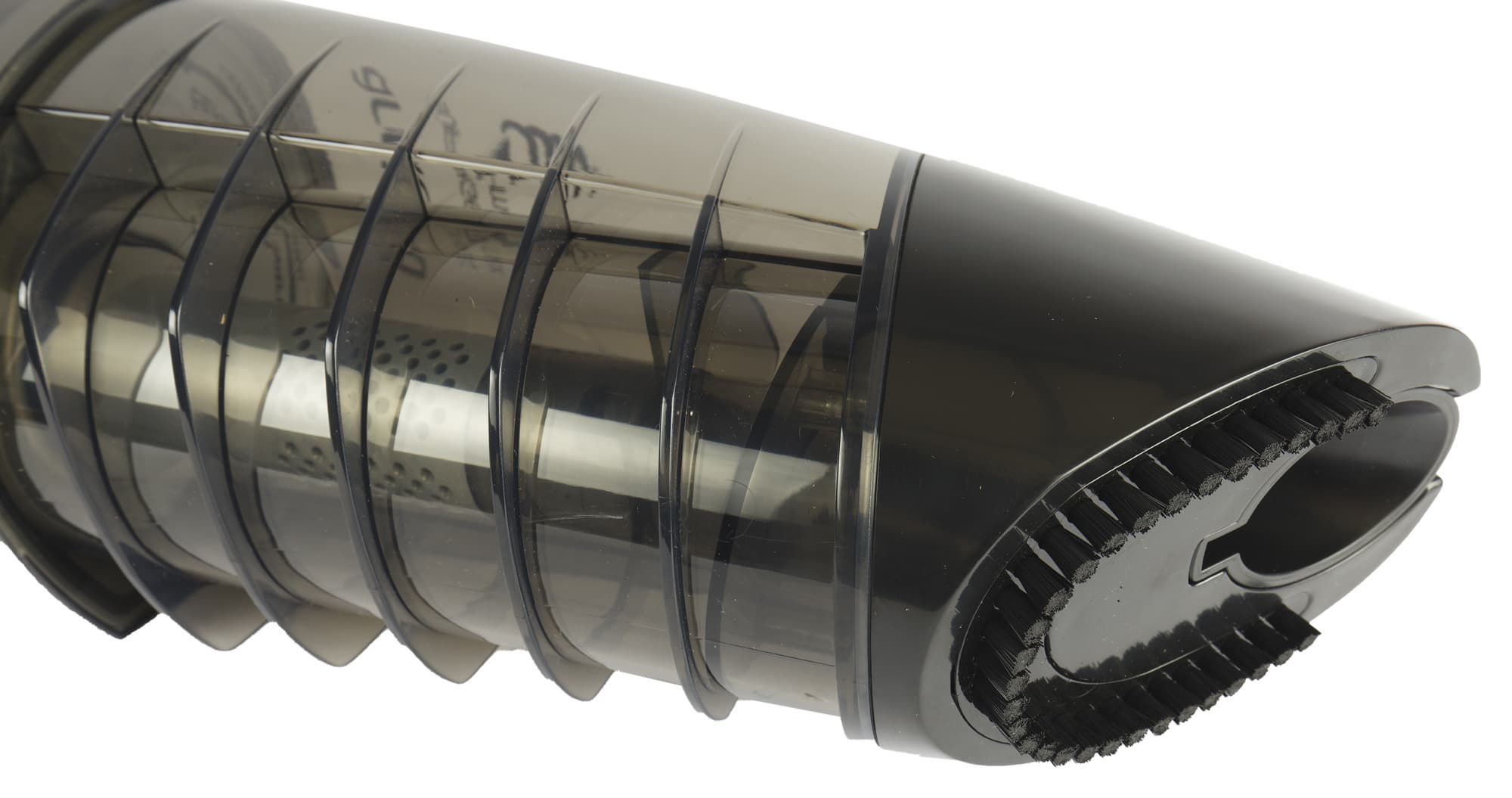 На переднем торце корпуса, вокруг отверстия для подключения насадок, размещен несъемный щеточный элемент: он предназначен для чистки мебели и одежды в ручной конфигурации.