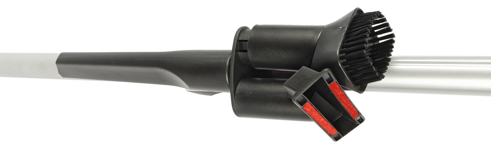 Насадок, идущих в комплекте — половой щетки и трех ручных, — в принципе, достаточно для выполнения большинства уборочных задач по уборке помещения. Комплект аксессуаров при желании можно расширить: производитель предлагает купить дополнительные насадки на официальном сайте.