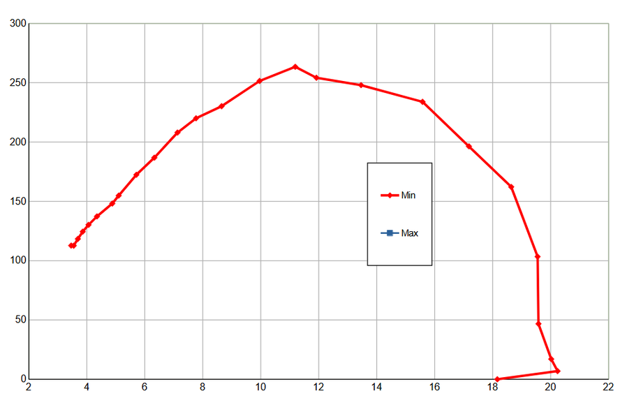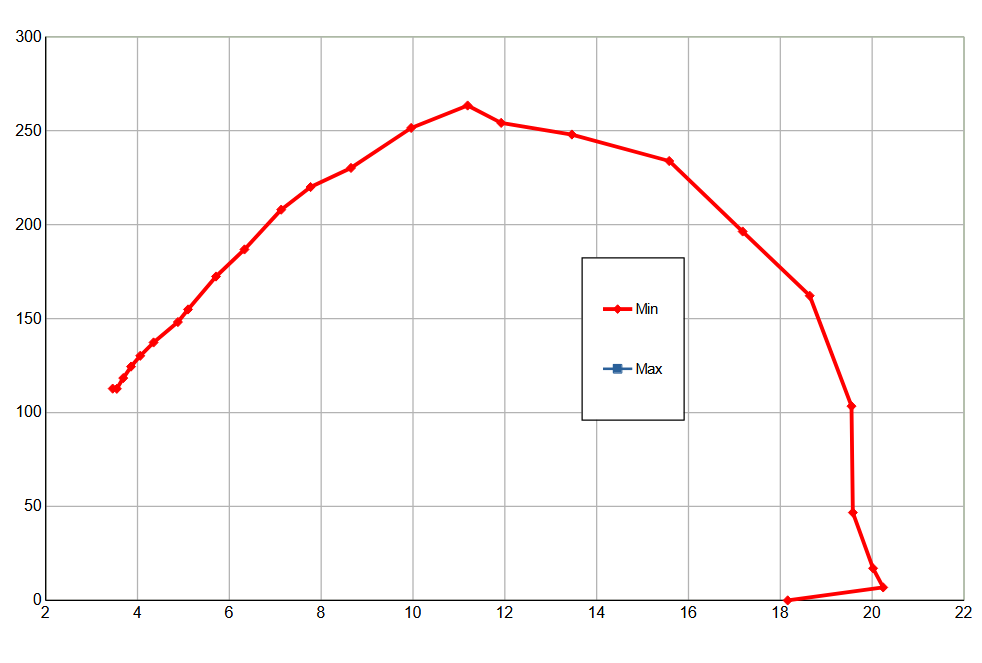Мощность всасывания (что это такое и как мы ее измеряем, описано в отдельной статье) мы определяли при работе пылесоса без трубы и насадок, в трех режимах. Зависимость мощности всасывания от создаваемого разрежения приведена на графике ниже:
