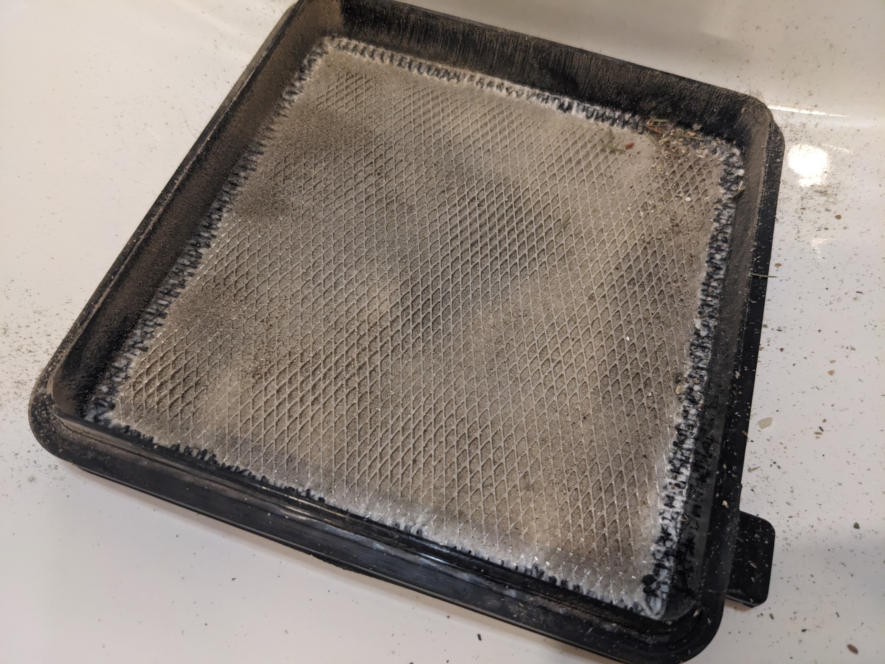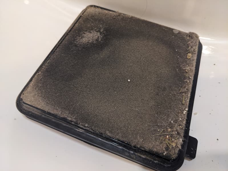 Пыль остается на втором фильтре и перед ним. Заметная ее доля оседает с обеих сторон предварительного фильтра из поролона, защищающего основной элемент.