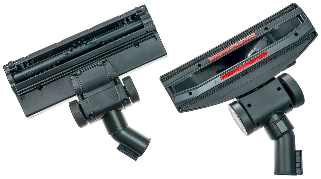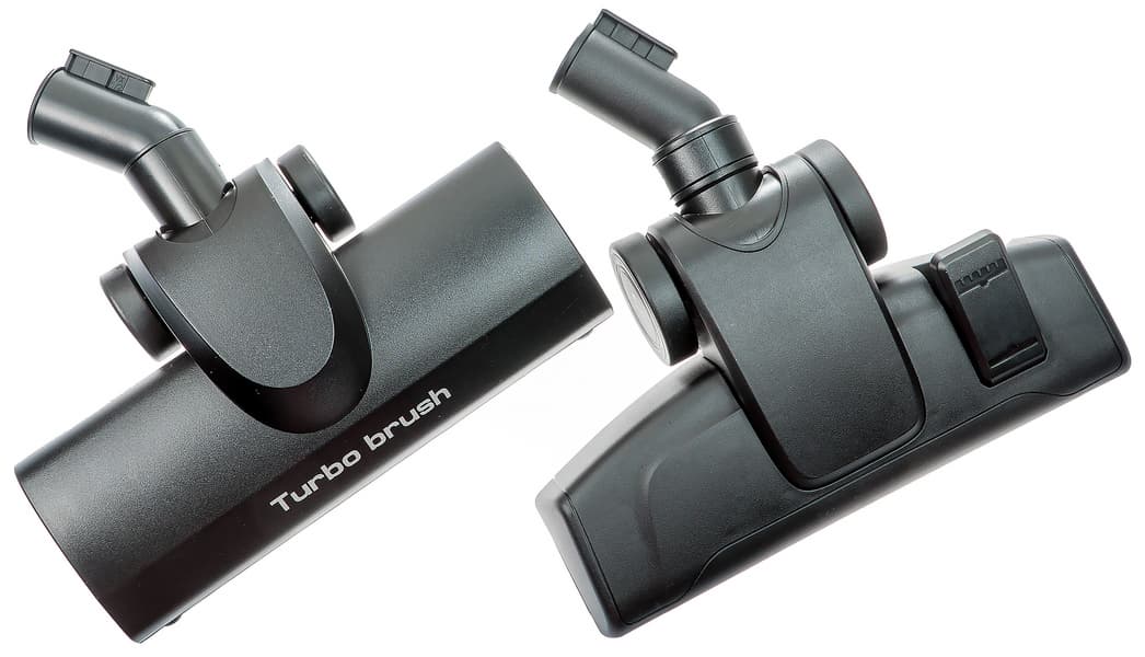 Комплект аксессуаров у обеих моделей идентичен. Для напольных ковровых покрытий предназначена насадка с турбощеткой, приводимой в движение потоком воздуха, а для твердых полов — щетка с выдвигающейся щетиной.