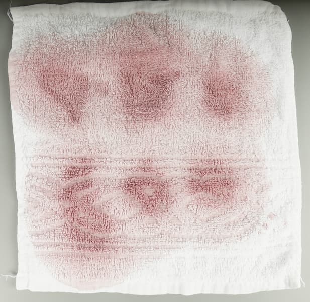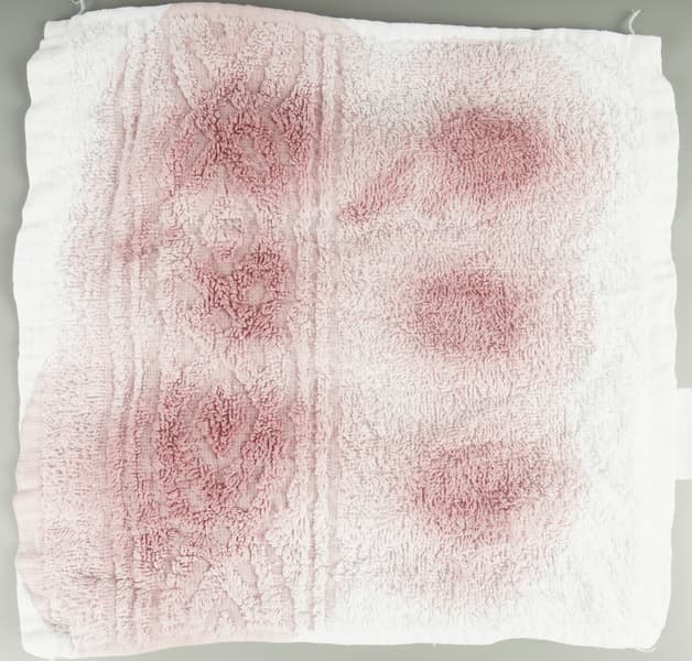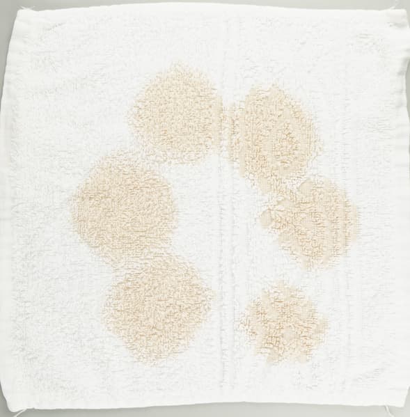 Этими жидкостями мы обработали (то есть выпачкали) белые махровые салфетки. На каждую нанесли несколько пятен своего вещества — чтобы лучше проиллюстрировать тест. Затем сутки абстрактная живопись украшала тестовую лабораторию при комнатной температуре и только после этого отправилась в стирку.