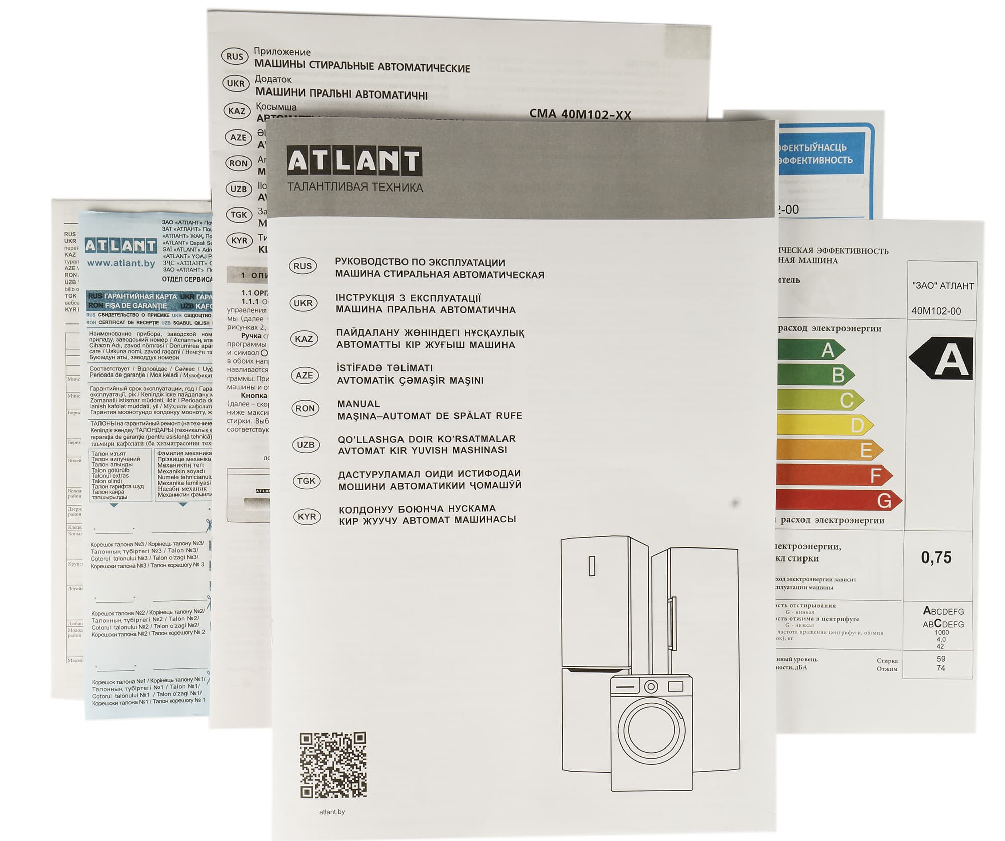 В пакет документации входят также гарантийный талон и список авторизованных в Российской Федерации сервисных центров Атлант.