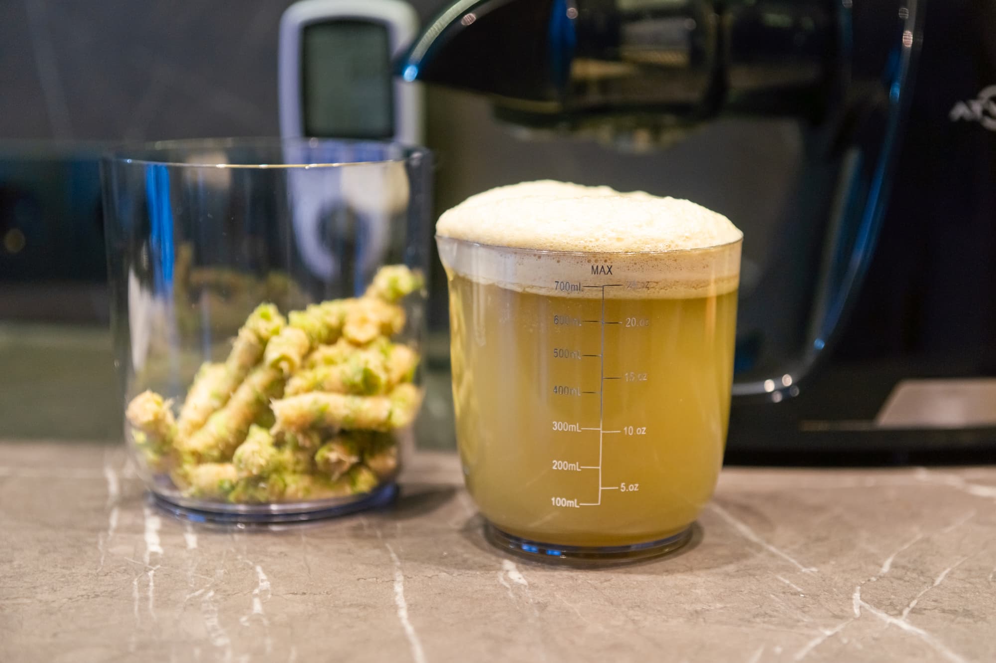Как и во время предыдущих тестов, при приготовлении этого сока прибор работал почти бесшумно, спокойно и без напряжения. После разборки насадки мы не обнаружили внутри никаких отходов.