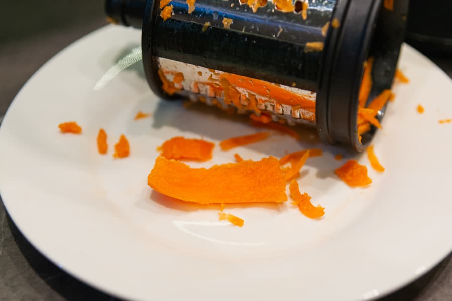 Для мелкой терки мы использовали очищенную морковь весом 80 г. Горка аккуратно натертого корнеплода появилась на тарелке через 18 секунд. Кусочек к кусочку, как будто ксерокопировали.