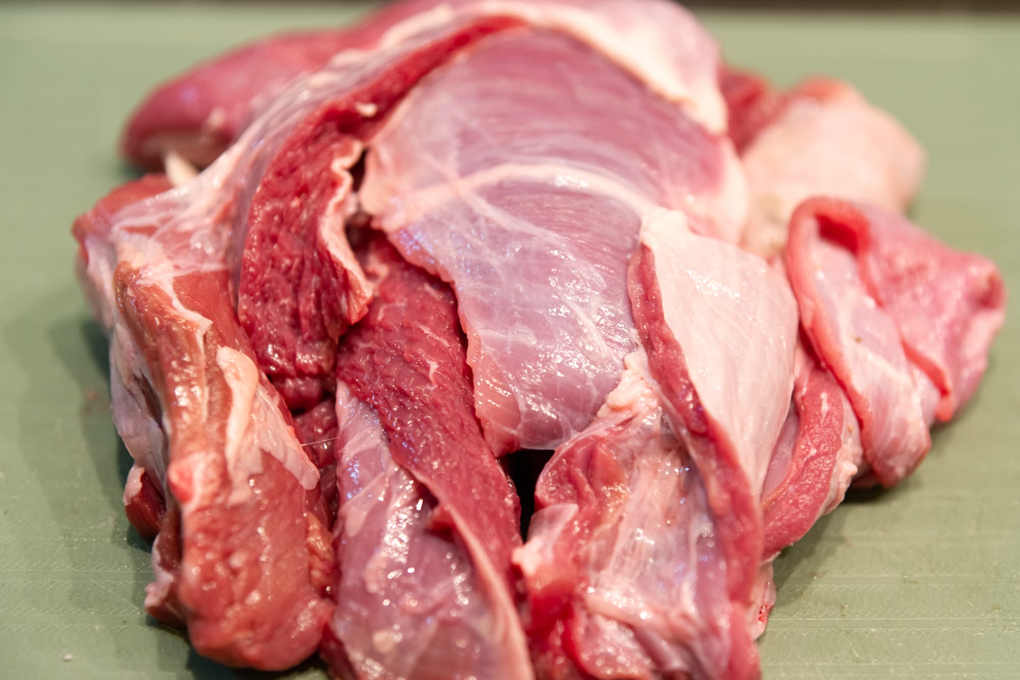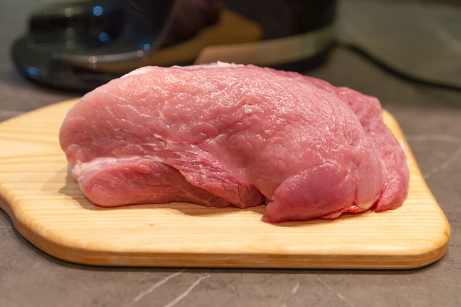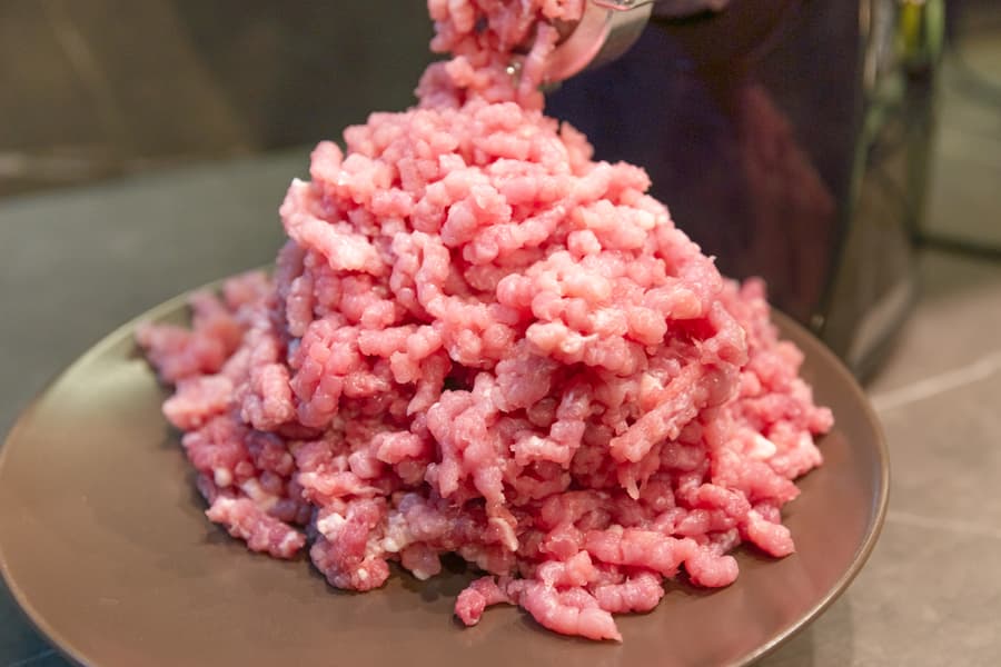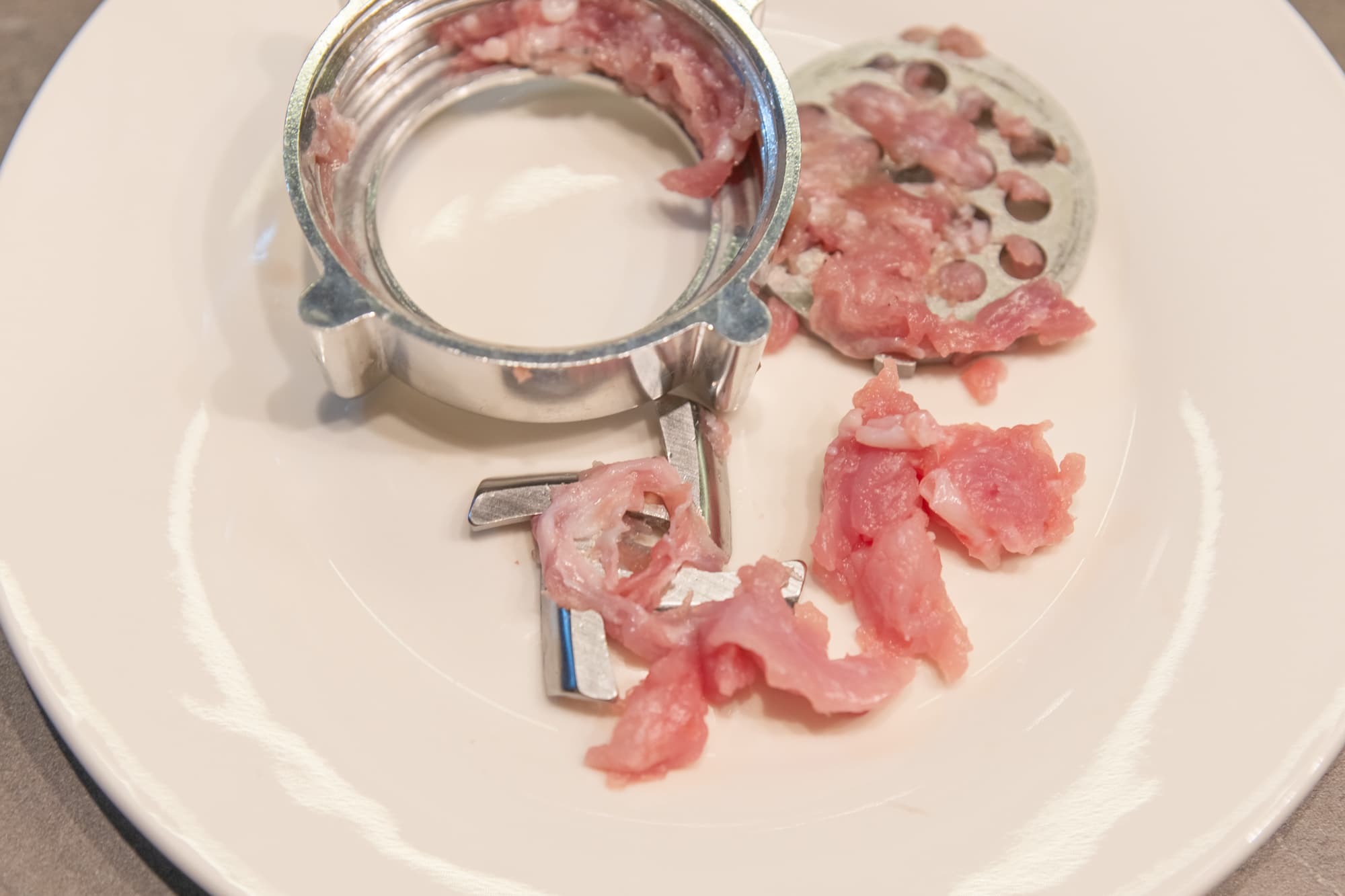 Свиной окорок мы нарезали на длинные куски, свободно проходящие в горловину, и пропустили через крупную решетку. Для 1 кг мяса потребовалась 1 минута 39 секунд.