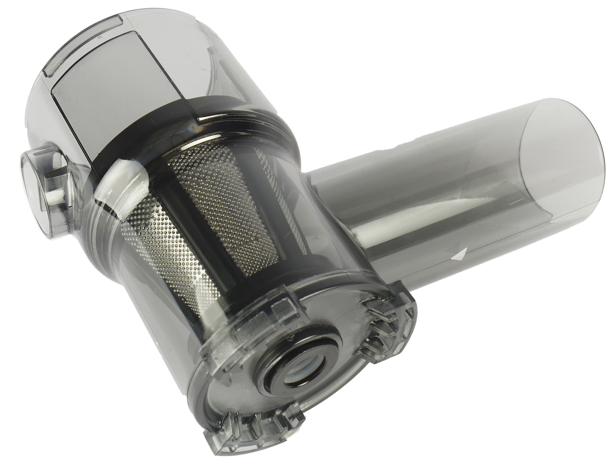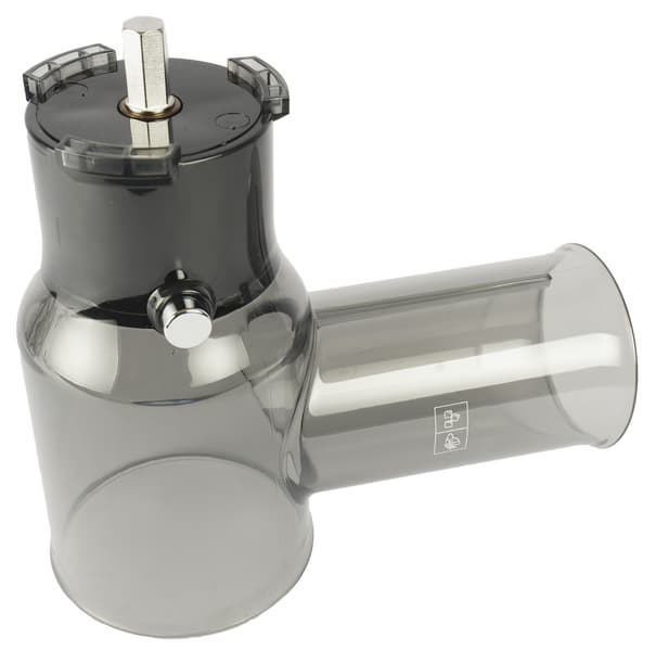 Емкости для сока и жмыха изготовлены из прочного на ощупь прозрачного пластика. Объем стакана для сока — 0,7 л, для жмыха — 1,3 л. На контейнере для сока есть риски в миллилитрах и унциях, с шагом 100 ml и 5 oz. При хранении стаканы одинаковой формы (за исключением небольшого носика у емкости для сока) можно вставлять один в другой, для экономии места.