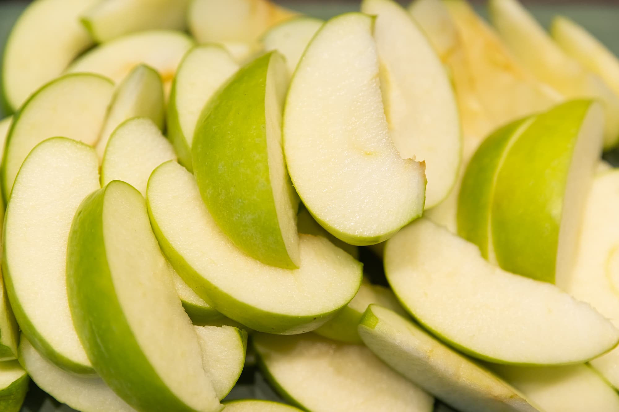 Плоды со шкуркой, но с вырезанной сердцевиной были разрезаны на дольки, свободно проходящие в горловину.