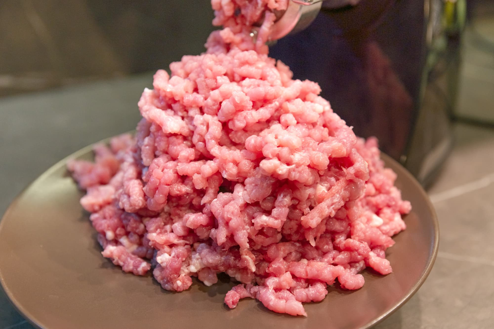 С переработкой сложной говядины устройству тоже справилось без проблем, но процесс шел значительно дольше. Полоски мяса мы опускали в горловину максимально быстро, дополнительно придавливая их толкателем. На 1 кг фарша отличного качества у нас с мясорубкой ушло 2 минуты 53 секунды.