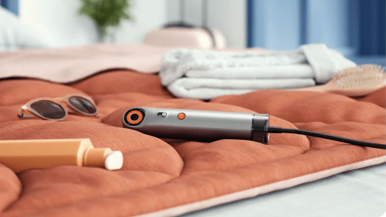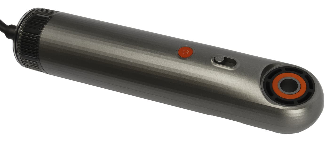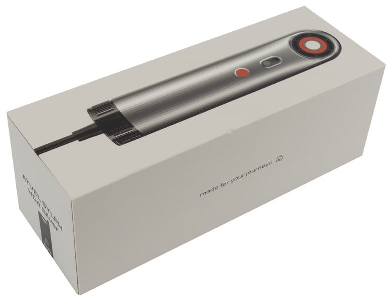 Atvel Sylph HD 4 имеет гендерно-нейтральный лаконичный дизайн и удивительно миниатюрные размеры и вес. Длина цилиндрического корпуса составляет чуть меньше 21 см, а диаметр — 4,4 см. Весит симпатичный фен без учета шнура всего 245 г.