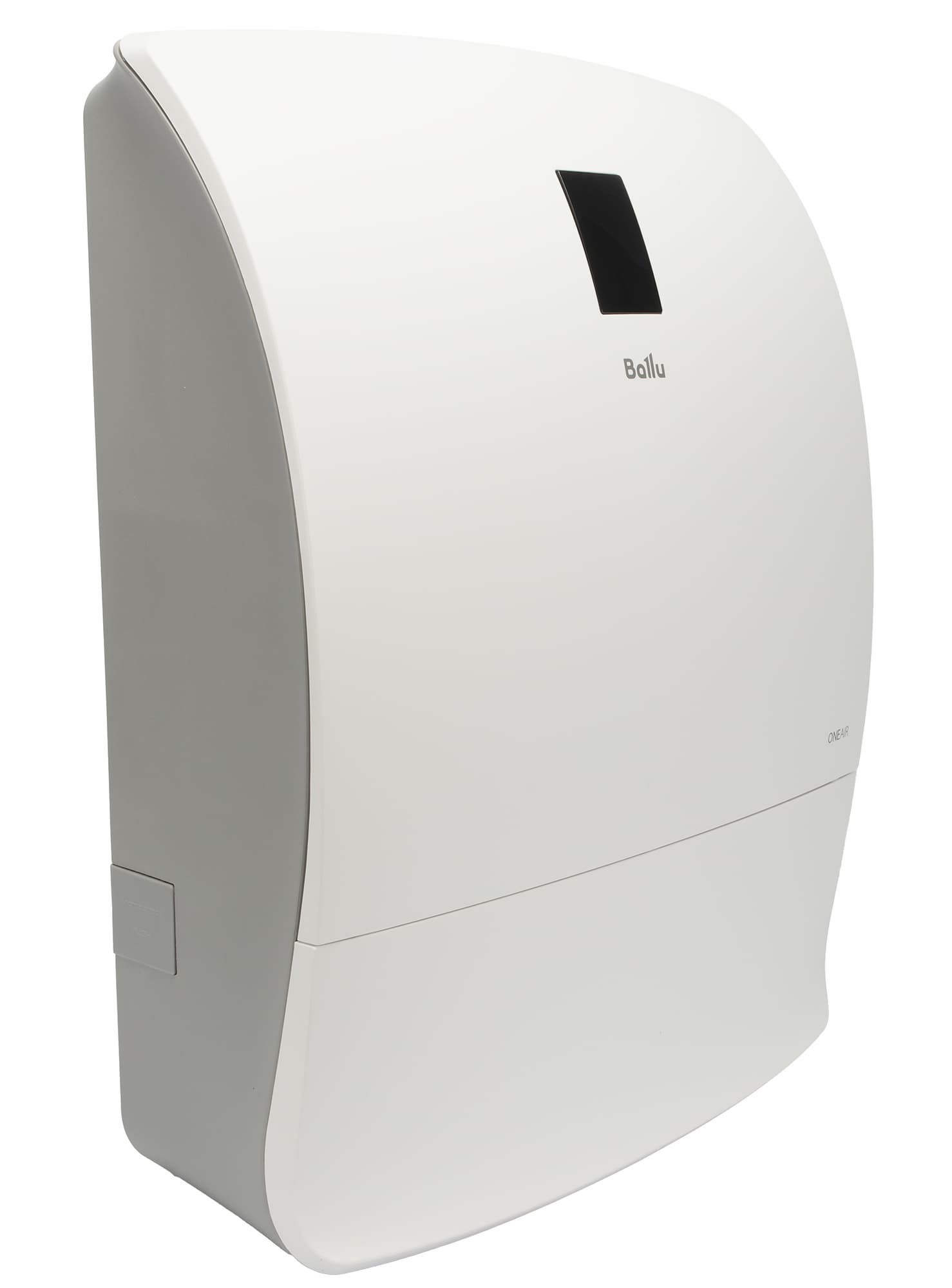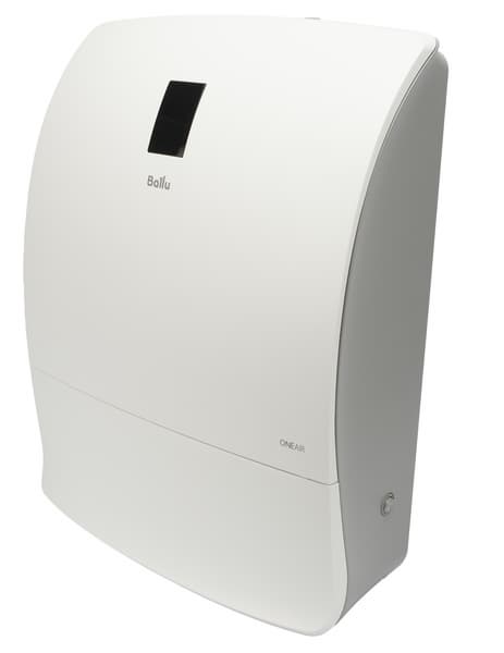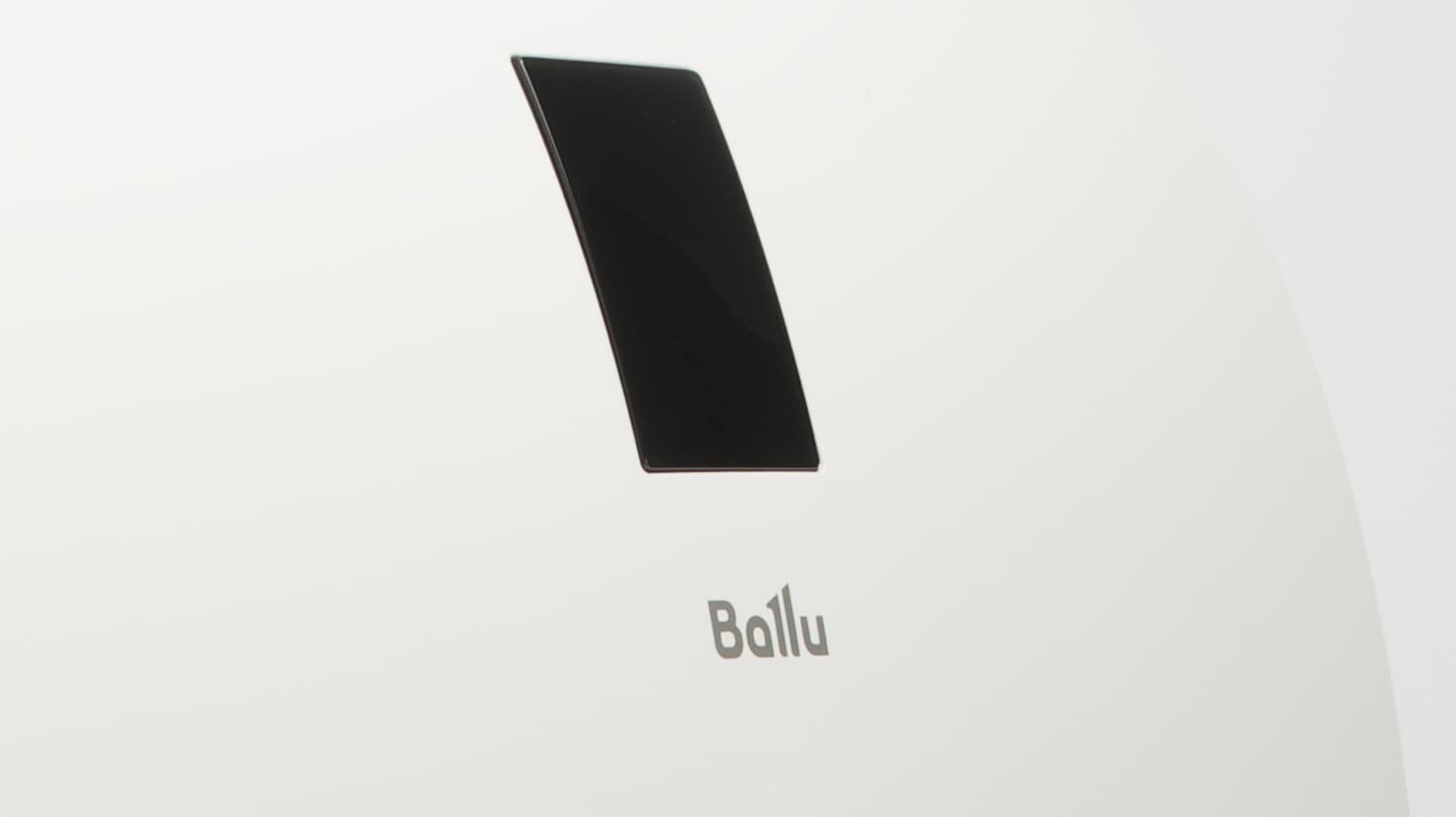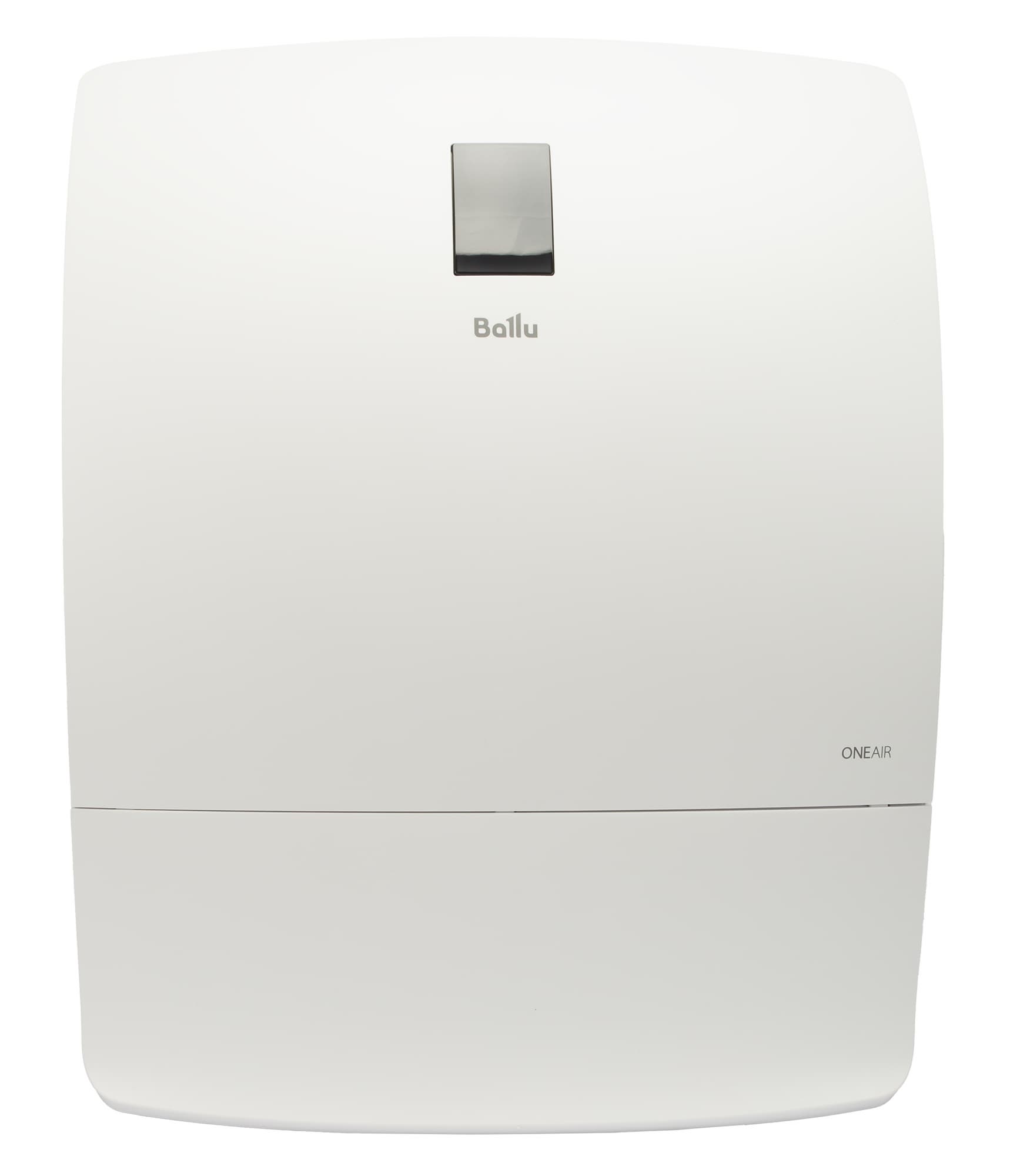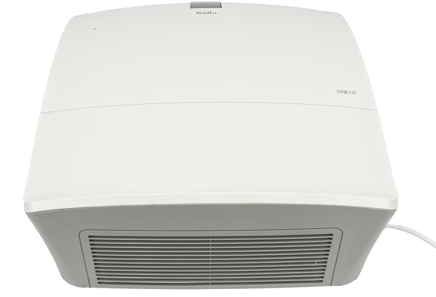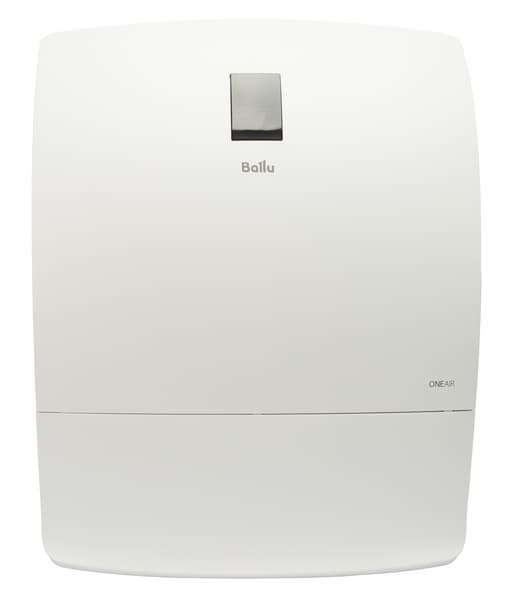 Ballu OneAir ASP-200 оформлен в традиционной для этих устройств серо-белой гамме. Передняя панель устройства изящно изогнута. На ней мы видим жидкокристаллический экран из темного пластика, под которым размещен логотип производителя.