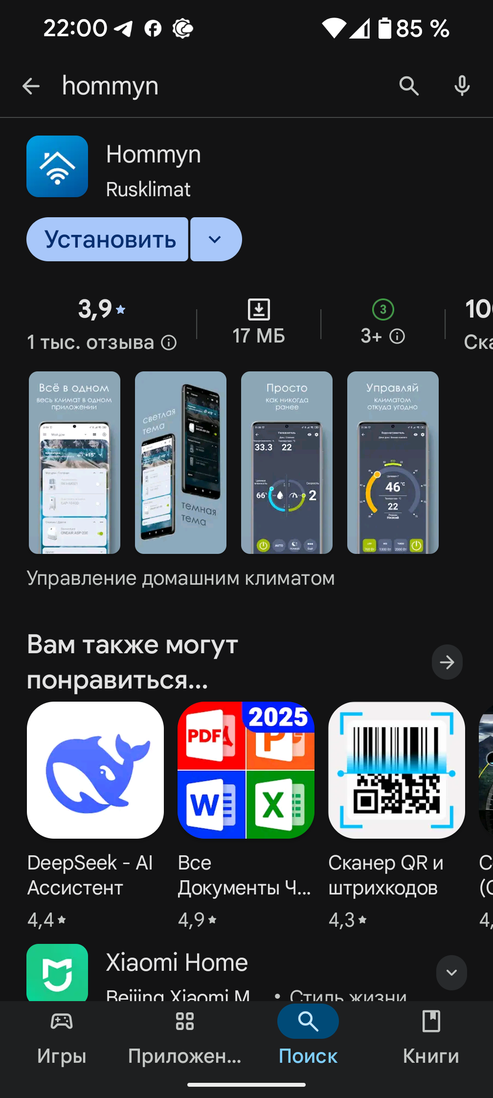 Для работы с устройством производитель предлагает приложение Hommyn (Rusklimat).