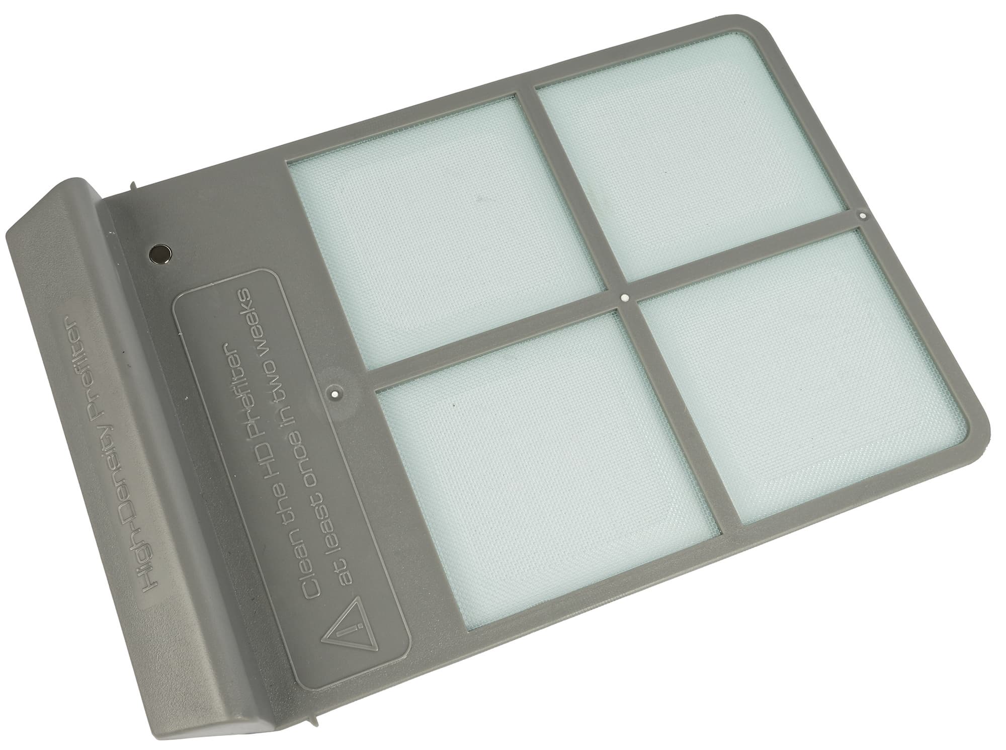 Фильтр представляет собой мелкую капроновую сетку на пластиковой рамке, вставляемой в паз на верхней части корпуса.