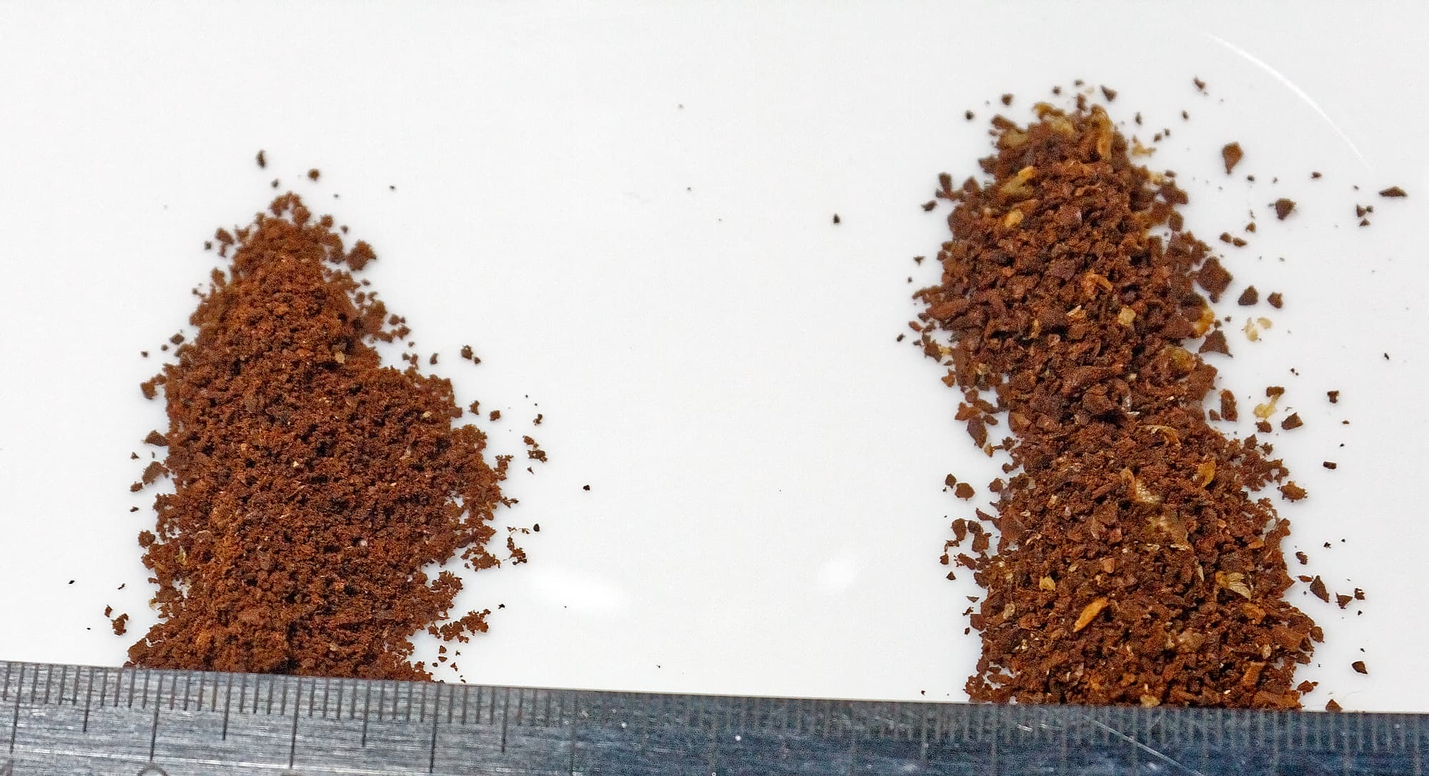 Слева — самый мелкий помол, справа — «восьмерка». Даже невооруженным глазом заметна разница между «десяткой» и «восьмеркой».