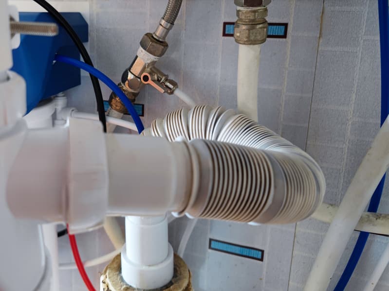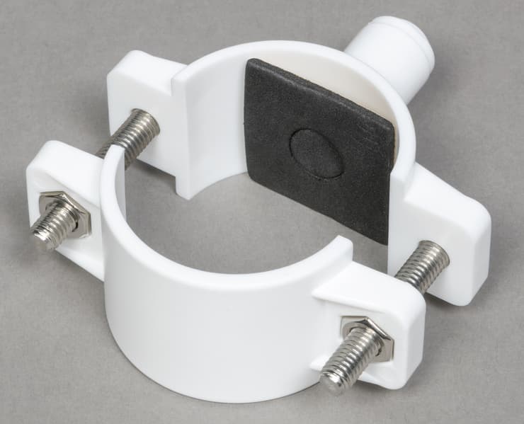 К системе водоотведения фильтр присоединяется с помощью дренажного хомута. Для его установки необходимо просверлить отверстие диаметром 8 мм на вертикальном участке канализационной трубы, надеть дренажный хомут совместив отверстия, предварительно установив прокладку. Хомут затянуть винтами с помощью крестовой отвертки.