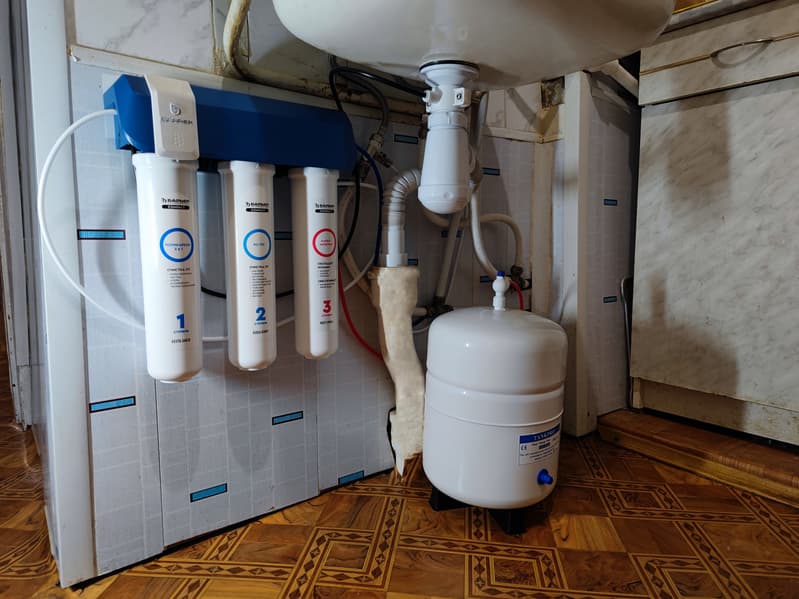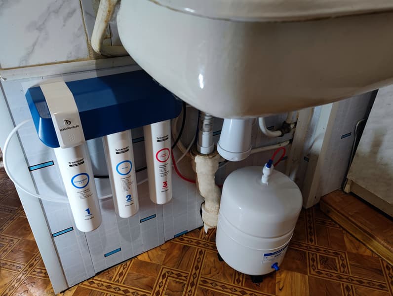 Общая жесткость, слегка превышавшая нормативный показатель (7,7 мг-экв./л при норме до 7,0), была понижена обратным осмосом до 0,7, а третий фильтр уменьшил ее до 0,3.