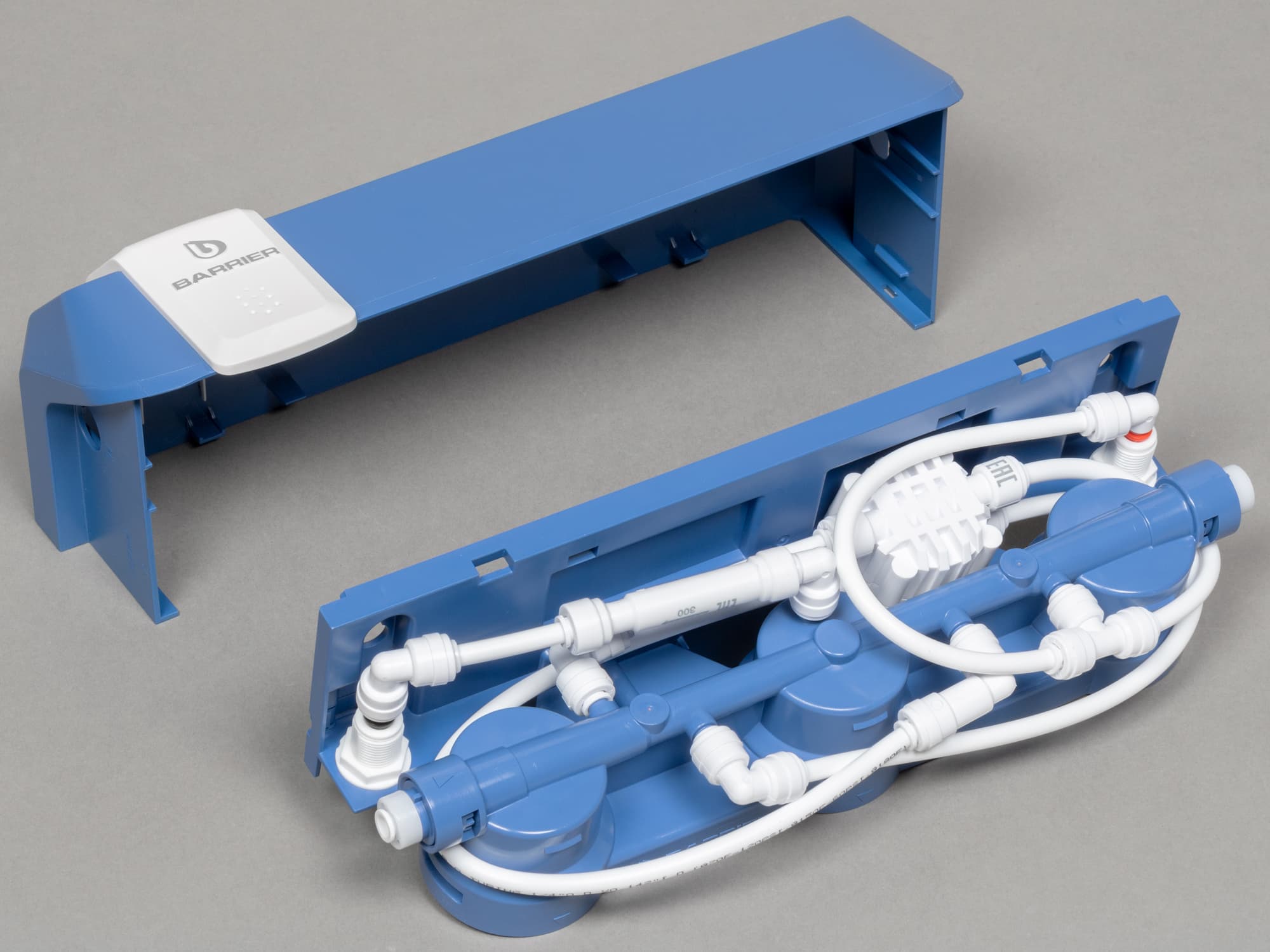 У фильтра Барьер Compact Osmo M компактная, удобная и эффективная конструкция, обеспечивающая качественную и быструю водоподготовку для централизованного водоснабжения. Кран с двумя вентилями позволяет без труда получить очищенную обратным осмосом воду для приготовления пищи или для использования в бытовых приборах — или же питьевую, обогащенную кальцием и магнием.