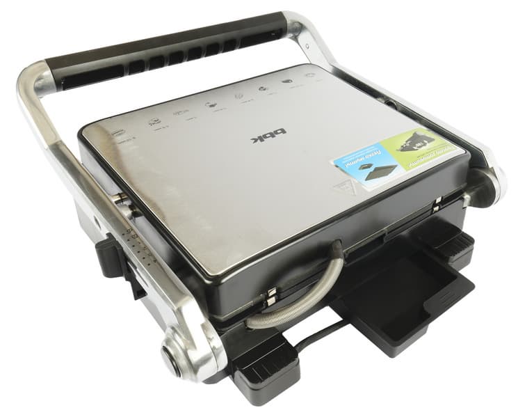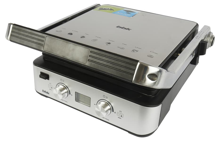 Эта модель прижимного гриля стандартна с точки зрения конструкции, но у нее есть интересное отличие в функциональности от большинства подобных устройств: нагревом панелей BBK BEG2004 можно управлять раздельно.