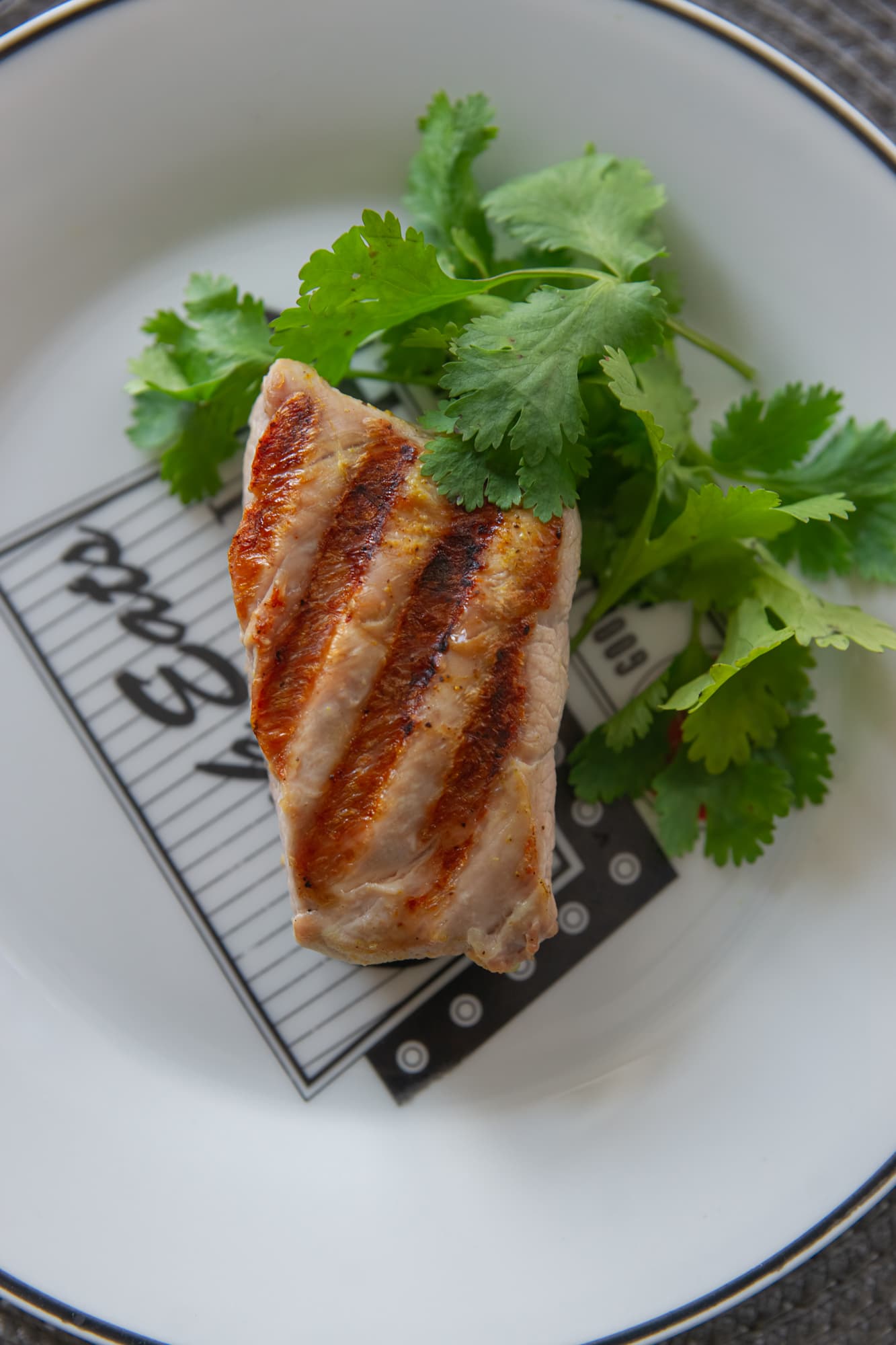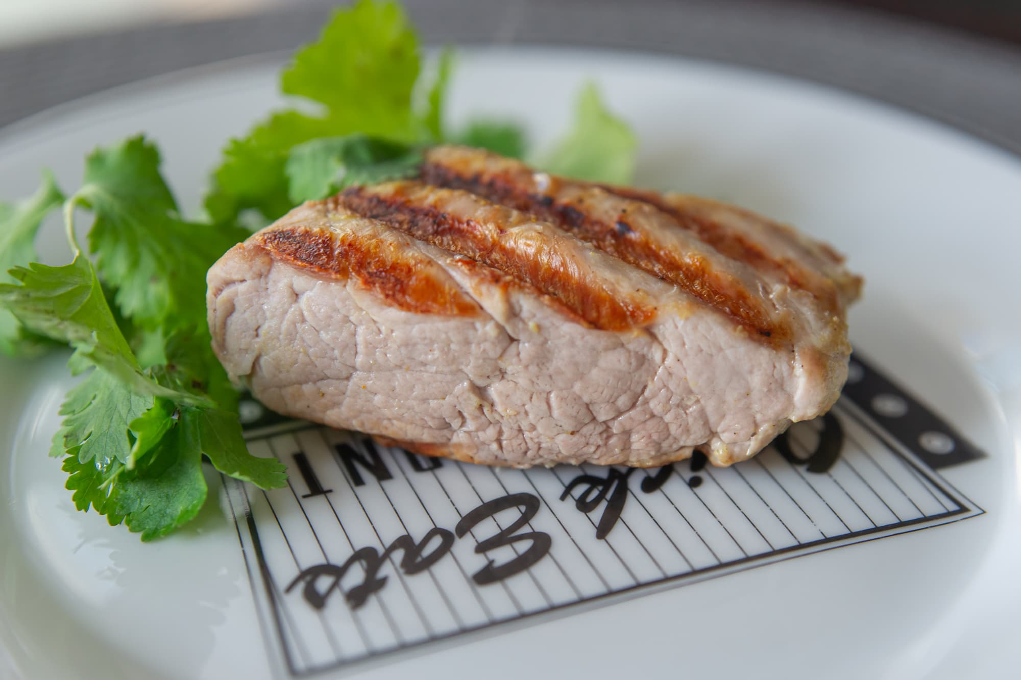 Свиную вырезку мы также жарили при максимальном нагреве.