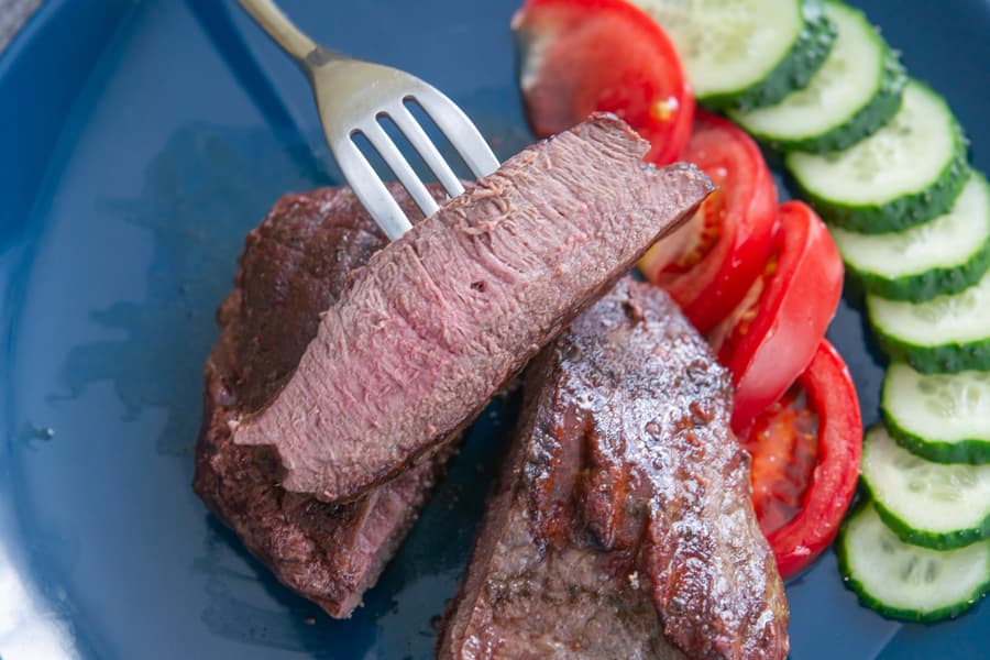 Мощности BBK BEG2004 хватило на качественное «запечатывание» мяса, внутри при этом оно осталось сочным. На прожарку стейка у прибора ушло чуть больше 4 минут.