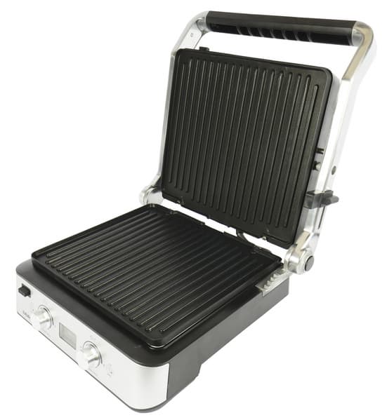 Прибор, нагревающийся до 220 °C, оснащен двумя съемными рифлеными пластинами, механизмом, раскрывающим их до 180°, и фиксатором уровня высоты крышки. В сегодняшнем обзоре мы расскажем, каким устройство оказалось в быту и насколько хороши были блюда, приготовленные с его помощью.
