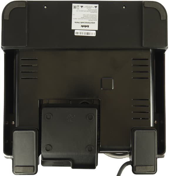 Прибор уверенно держится на поверхности стола, случайно сдвинуть его не так просто. Из правой ножки выходит шнур электропитания длиной 100 см.