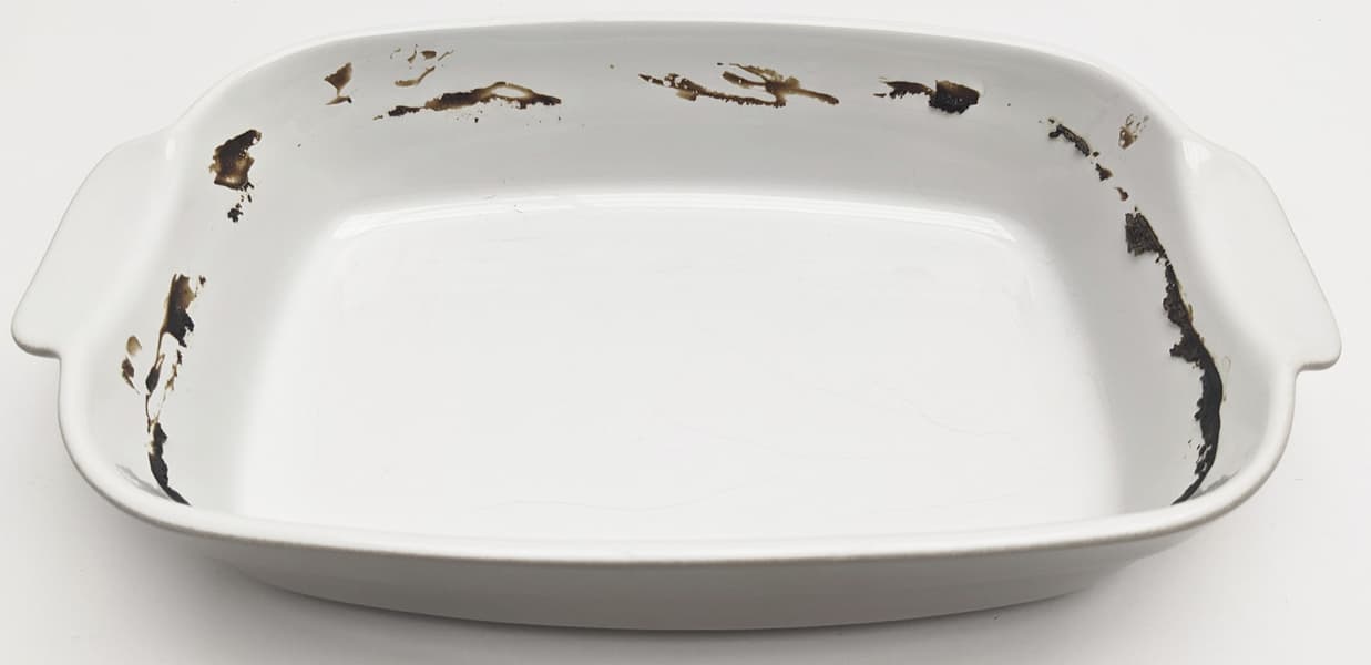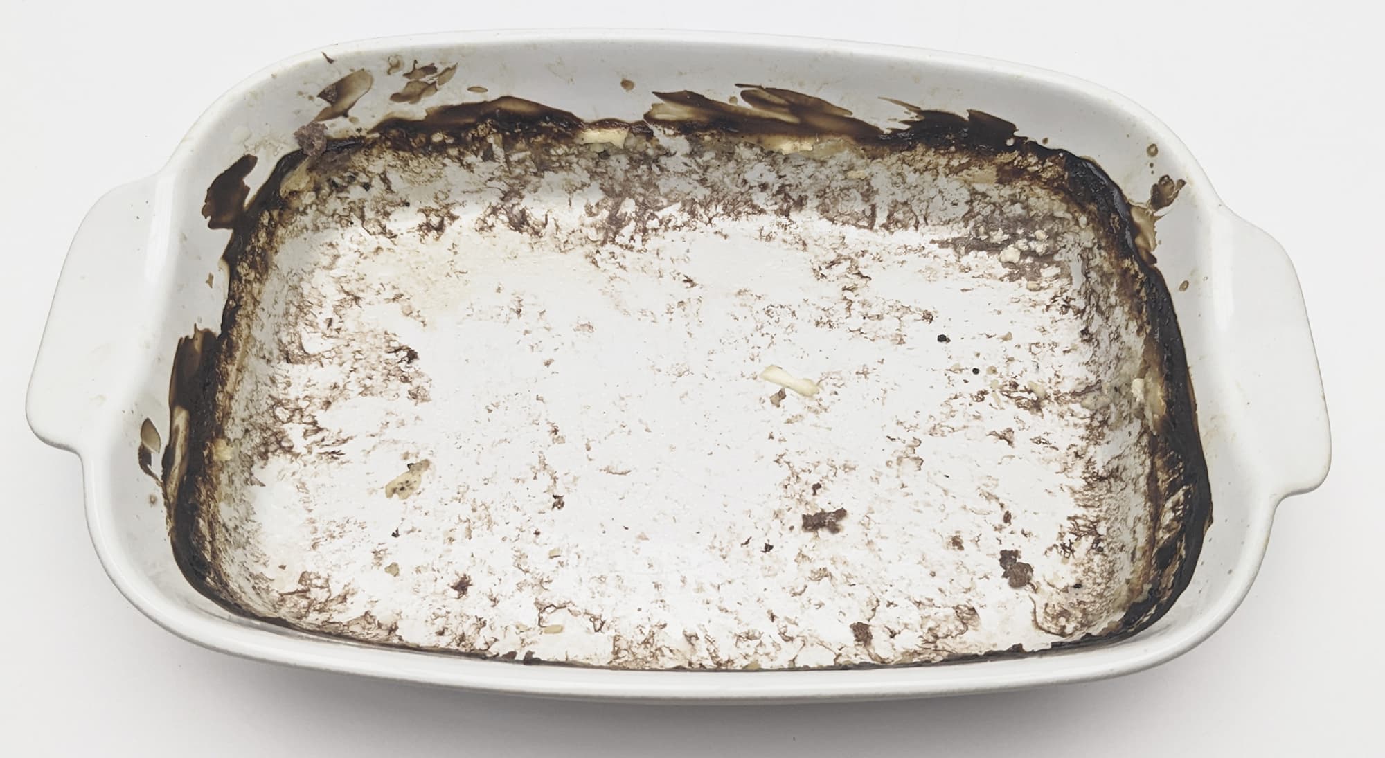 Опять же, любой приличный человек замочил бы эту красоту предварительно и попытался удалить хотя бы часть корки. Но нам-то надо проверить, как посудомойка сама справится!