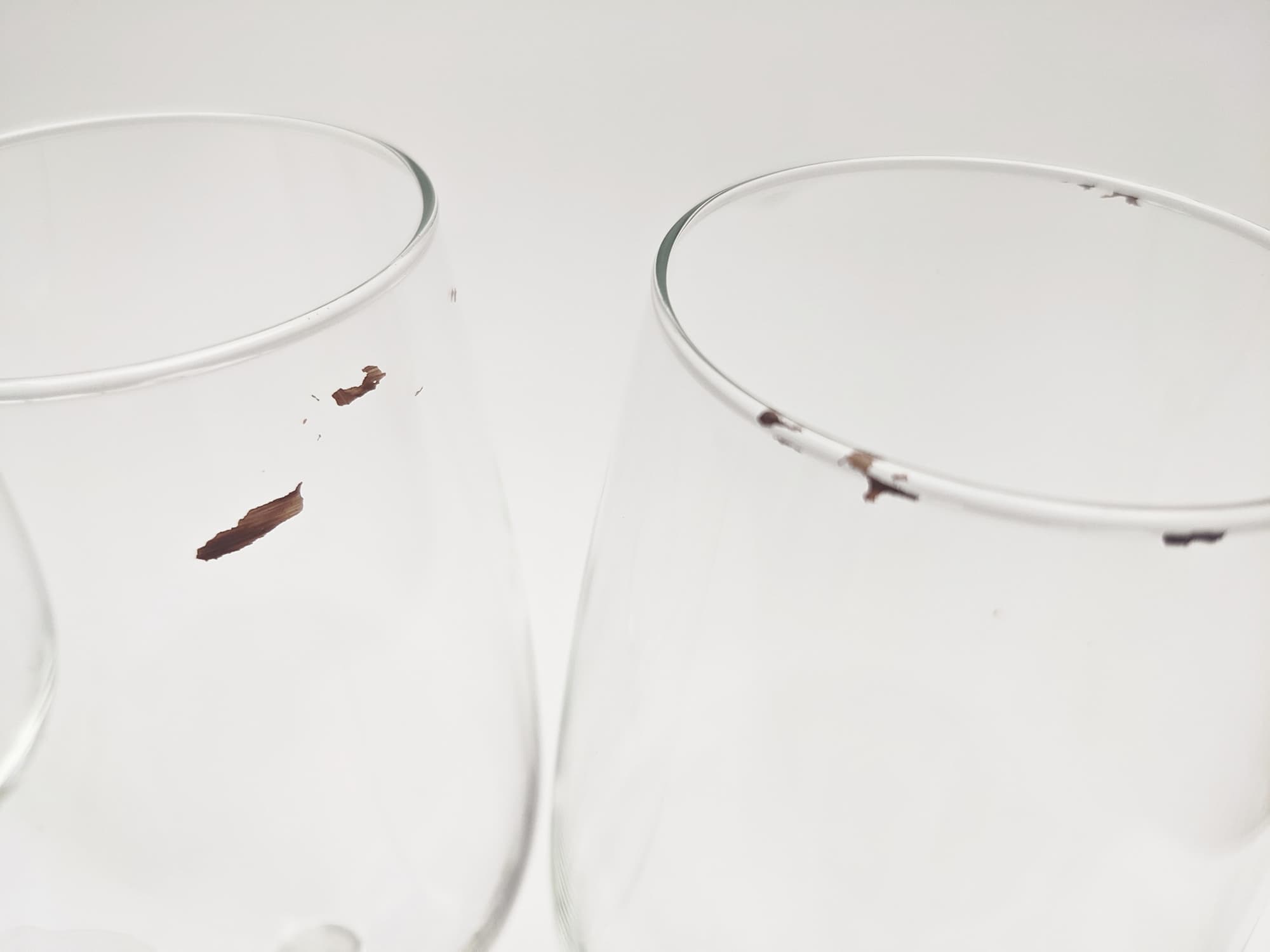 Эксперимент пришлось повторить, повернув бокалы так, чтобы заметные загрязнения были обращены вниз, в сторону струй форсунки. Со второго раза тест пройден без нареканий.